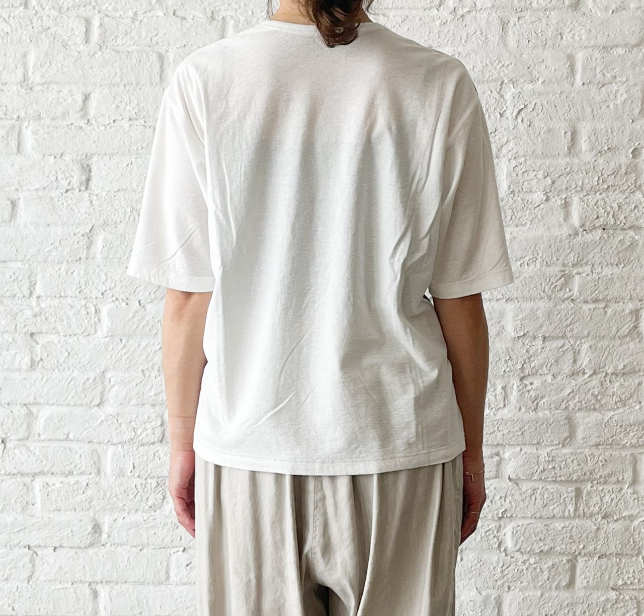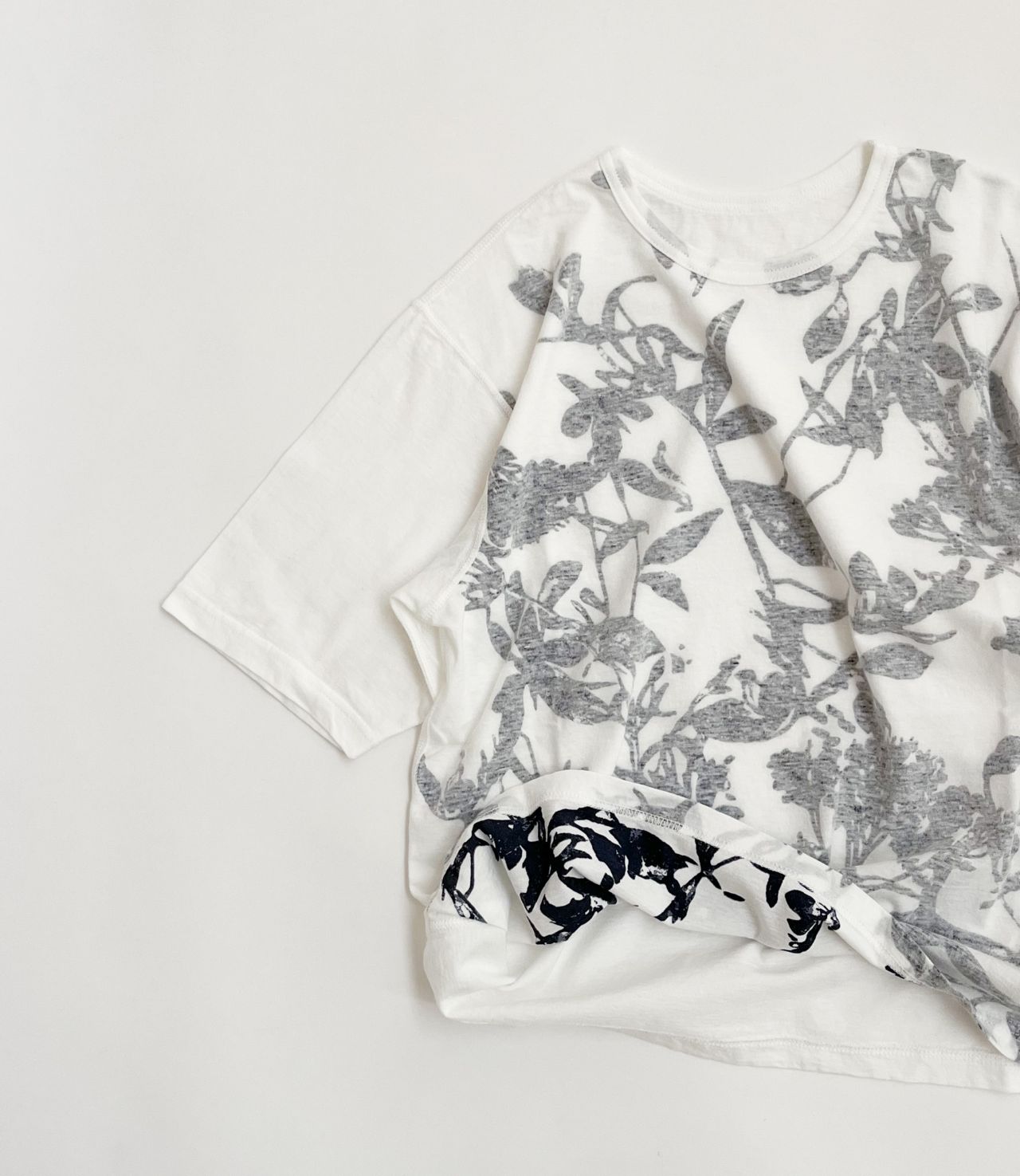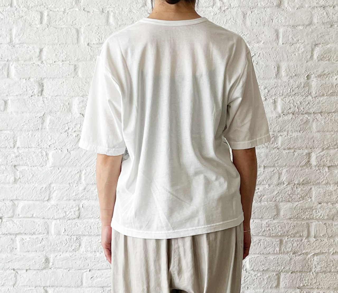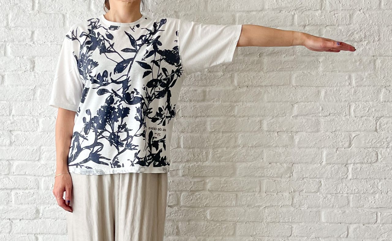 無地を表にして、プリントを透けさせて着るデザインのTシャツです。