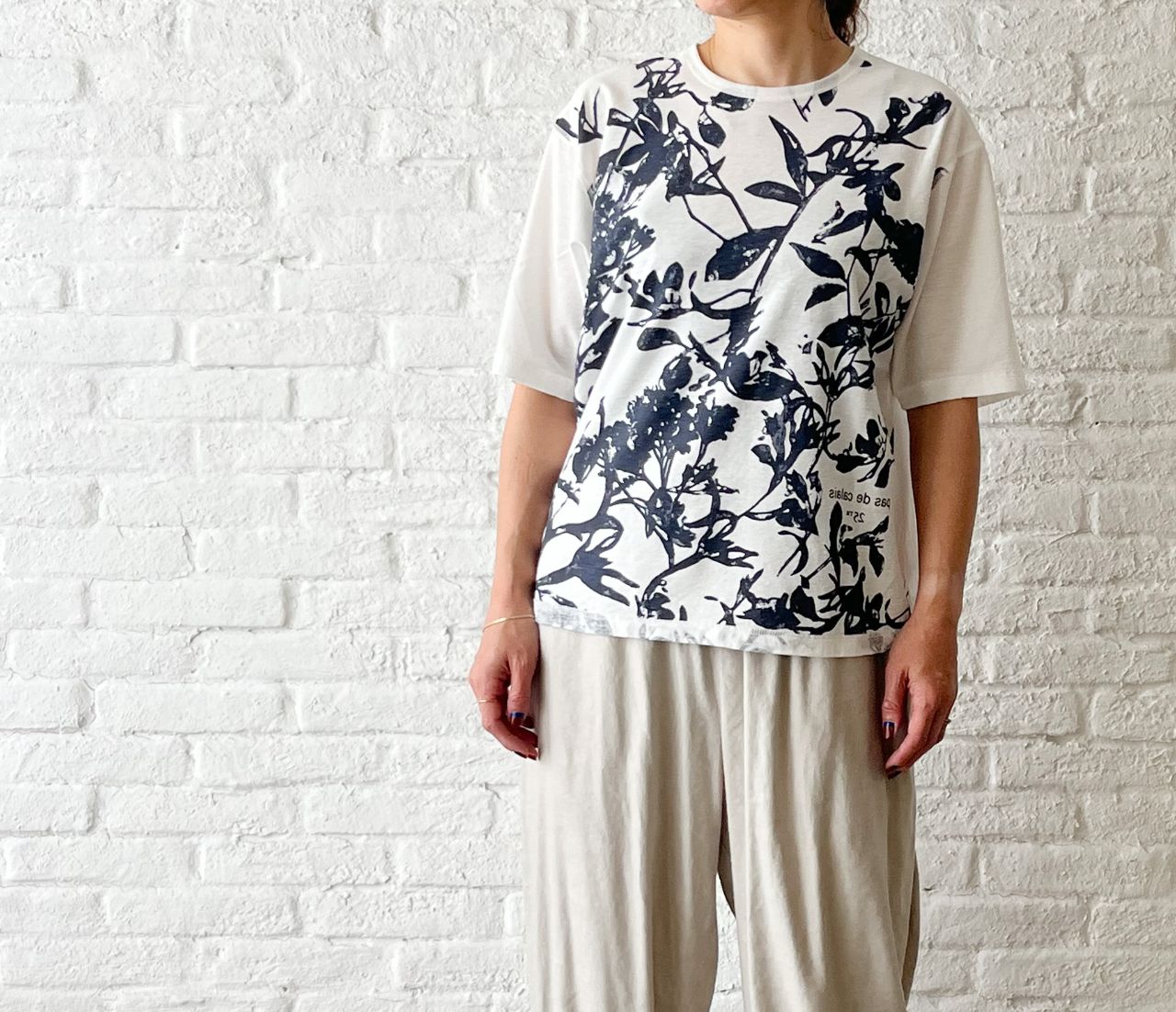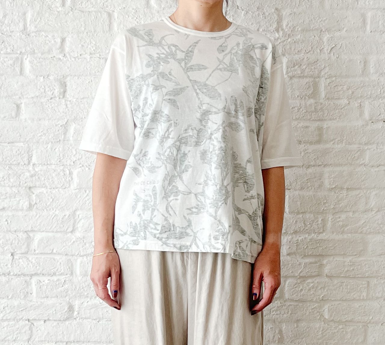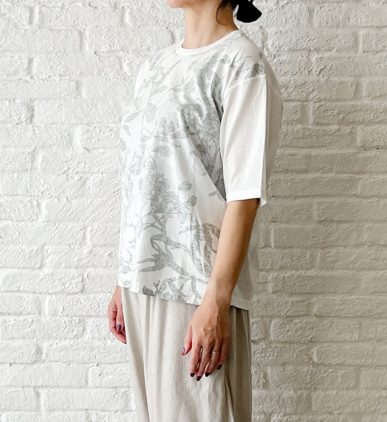 無地を表にして、プリントを透けさせて着るデザインのTシャツです。