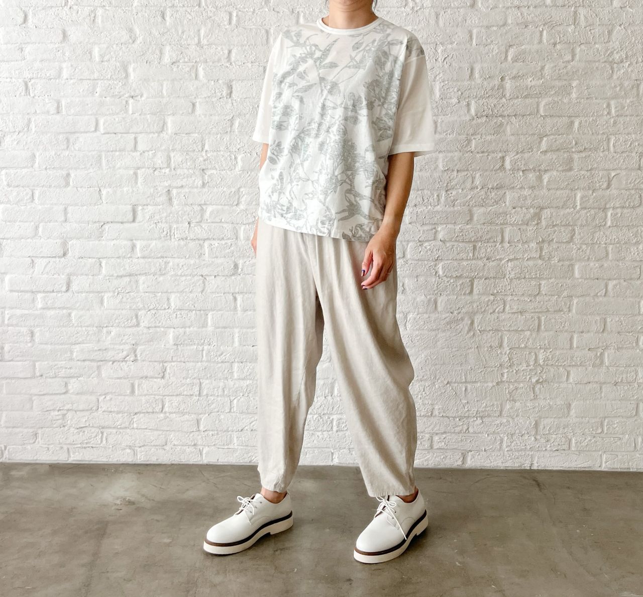 no.8411【W POINT】リネンレーヨンストレッチ クロップドパンツ