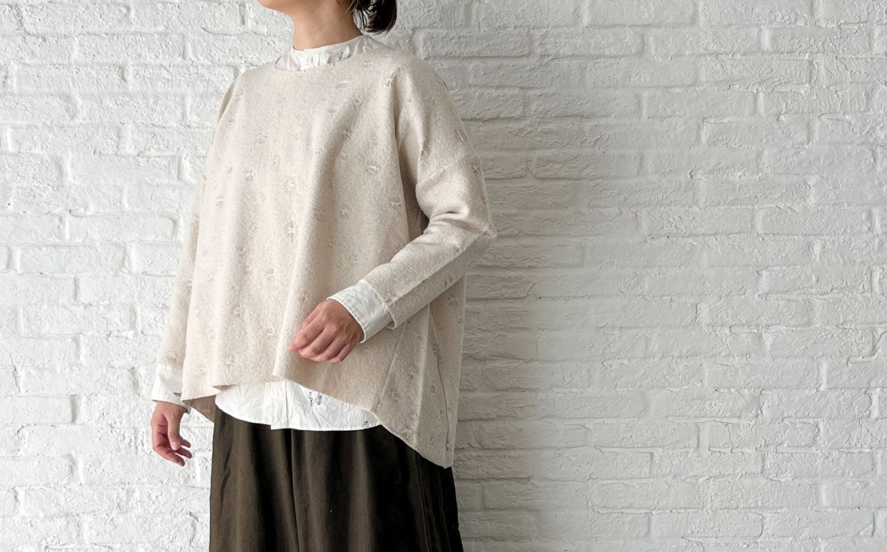 くっついている部分は透け感がなく、中にシンプルな長袖カットソーなどを重ねても良いようなゆとりあるサイズ感です。