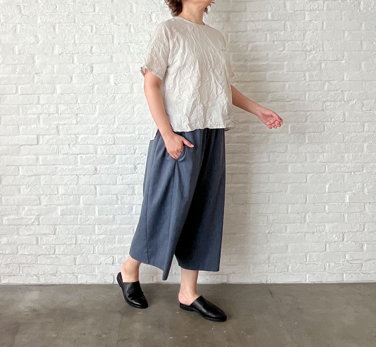 col.35 ブルー・36size(着用)/50 グレー/20 ネイビー/size展開・34 ¥33,000 →¥29,700