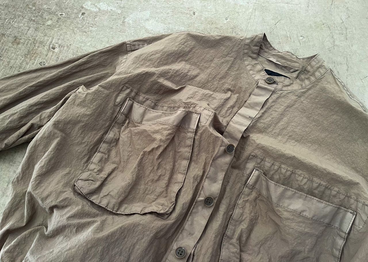 生地の整理を行う前の生機(きばた)と呼ばれる生のままの状態から、製品を作り製品染めを施すことにより、深い表情を出している。