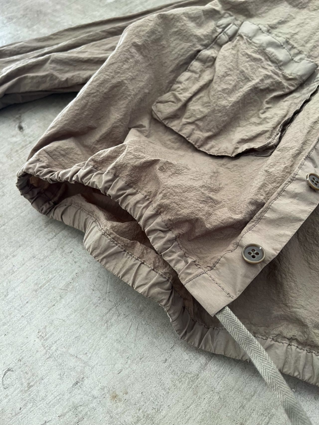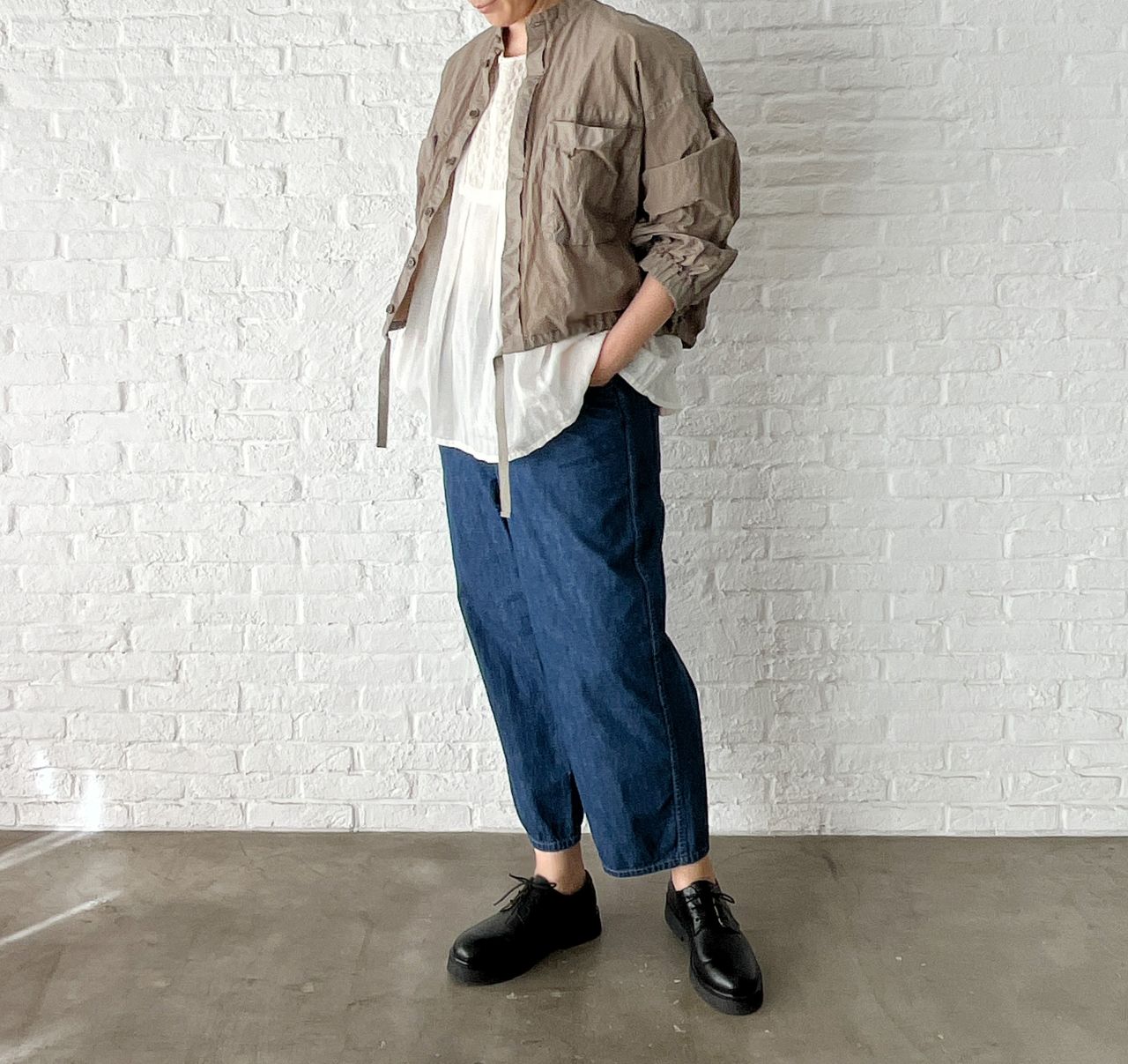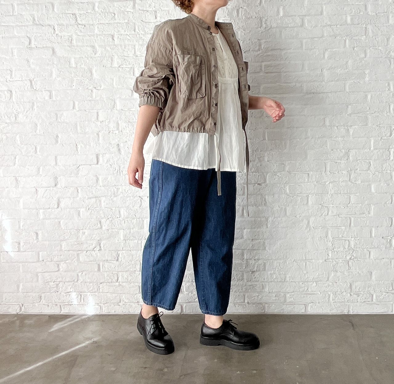 たっぷりした身幅や大きめなポケットと、やや短め丈のバランスが、なんともかわいいアイテムです。
