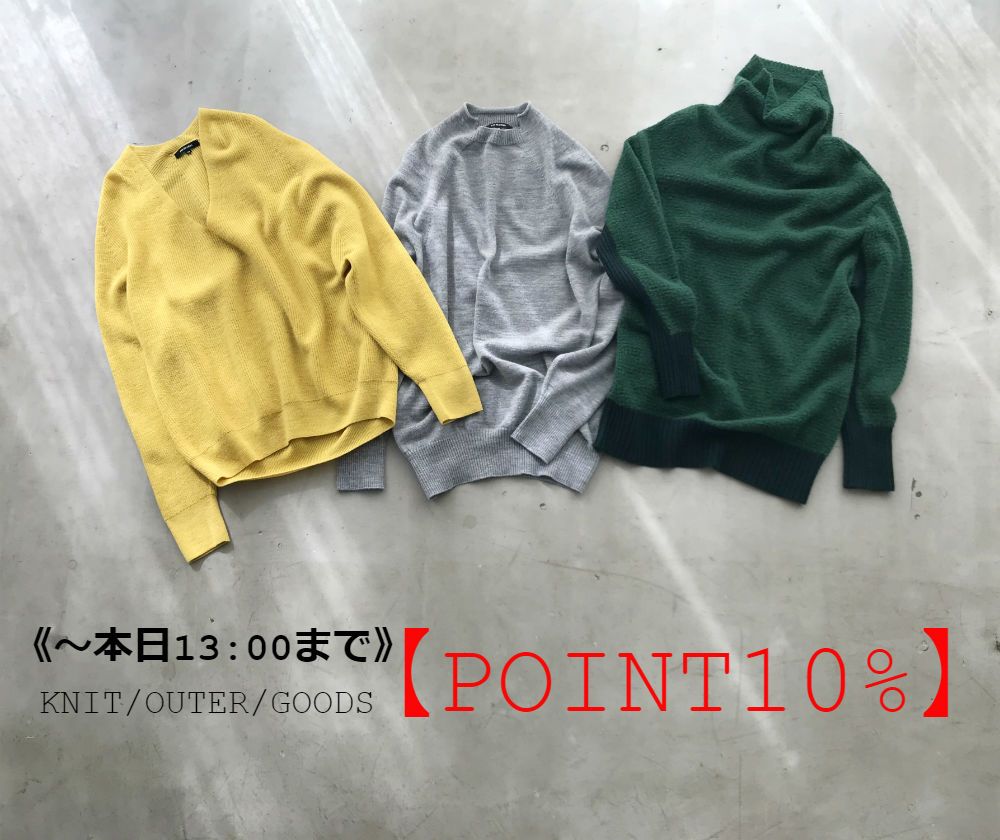 カシミヤストールも、レザーシューズも、先週末入荷のニットも!本日13:00まで【POINT10%】