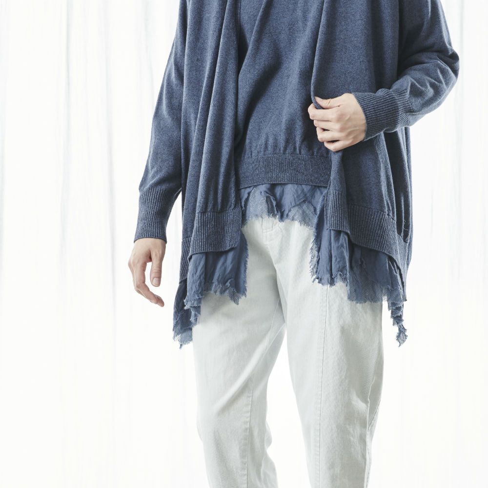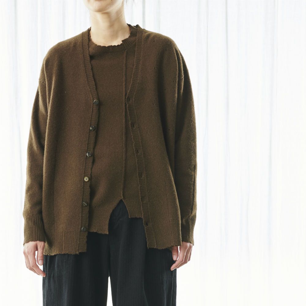 no.2134【2,900pt付与】植物染めコットンウール切り替え カーディガン