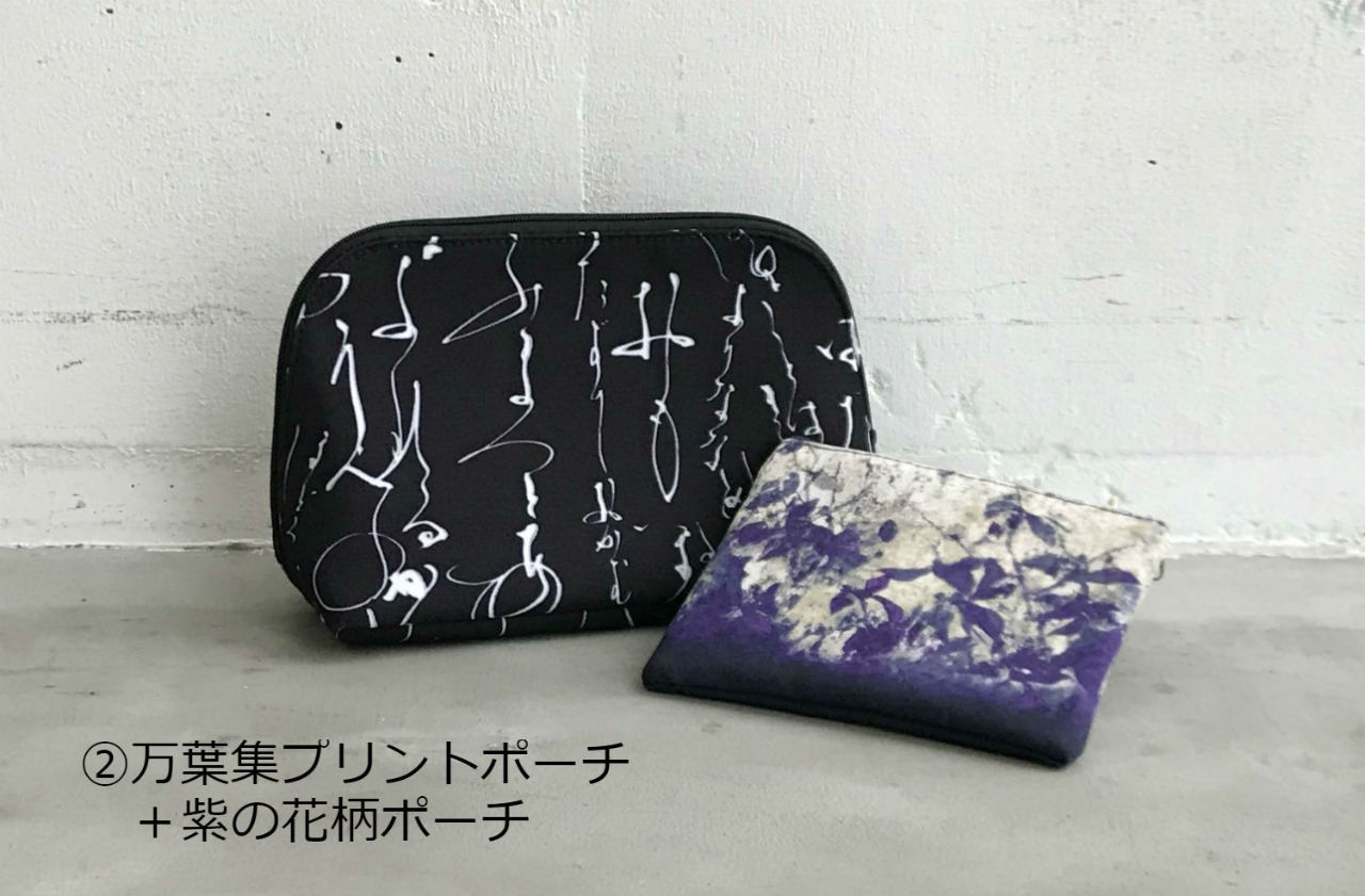 ②万葉集プリントポーチ&紫の花柄ポーチのセット  のどちらかをオーダーしていただけます。