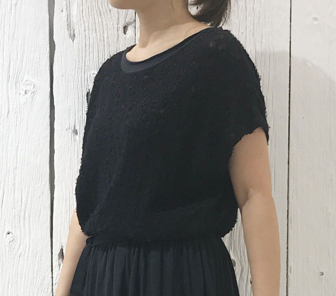 ウエスト~上に、穴が開いたJQ生地をのせて2重にしていて、カットソー素材なので着心地は柔らかです。