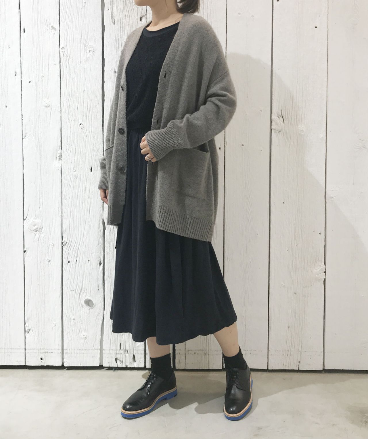 冬は必ず来るはずなので、ニットカーディガンで着回しコーディネートのご紹介を。