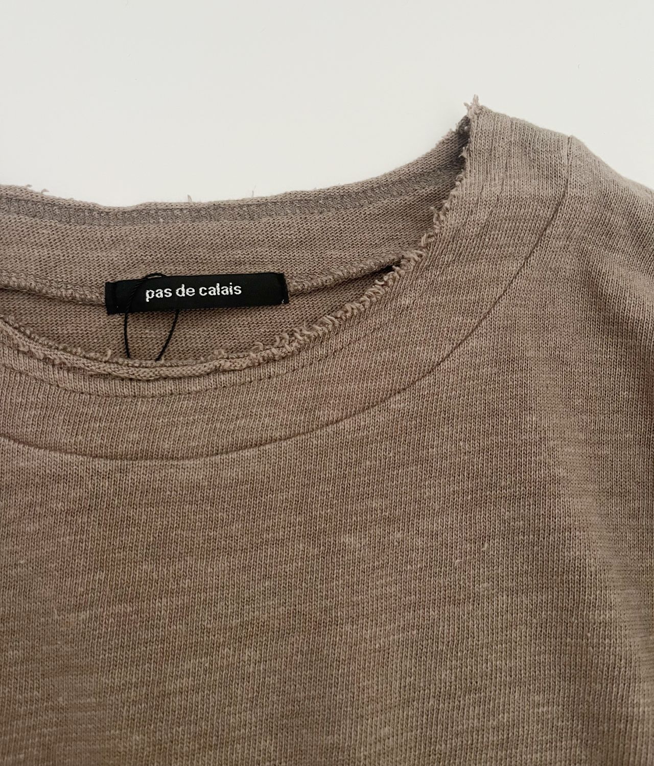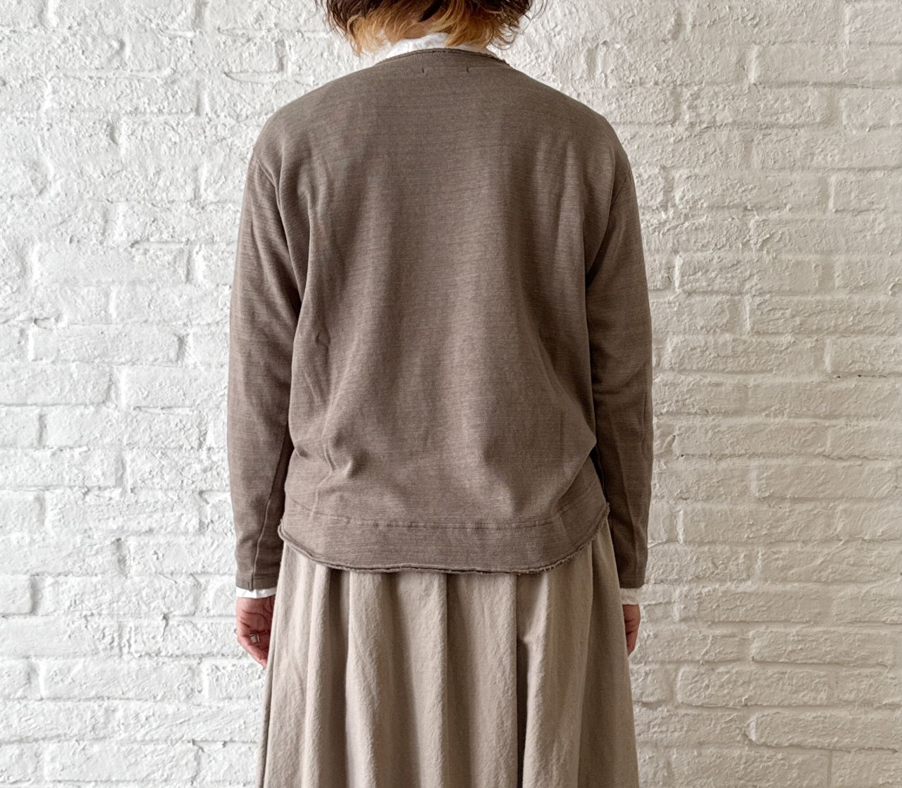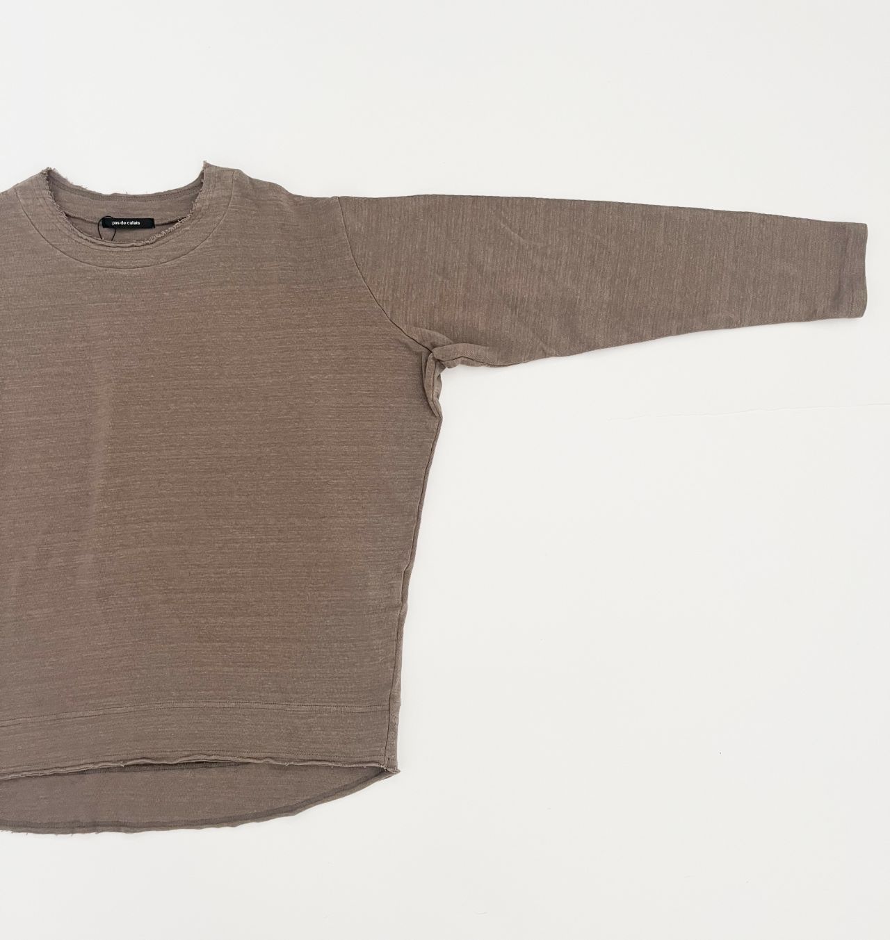 シルエットはシンプルですが、衿や裾をカットオフにしてカジュアル感を出したプルオーバー。
