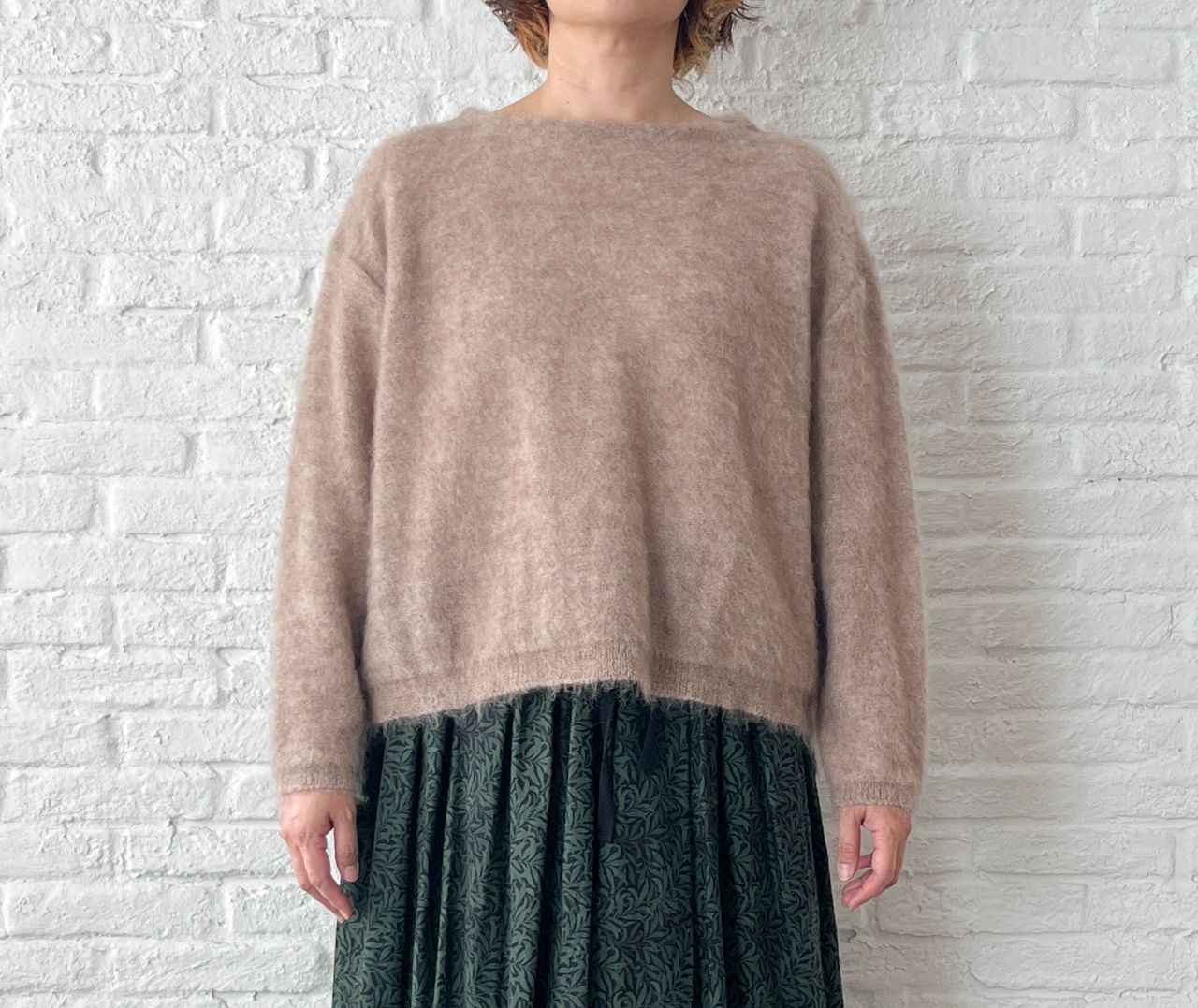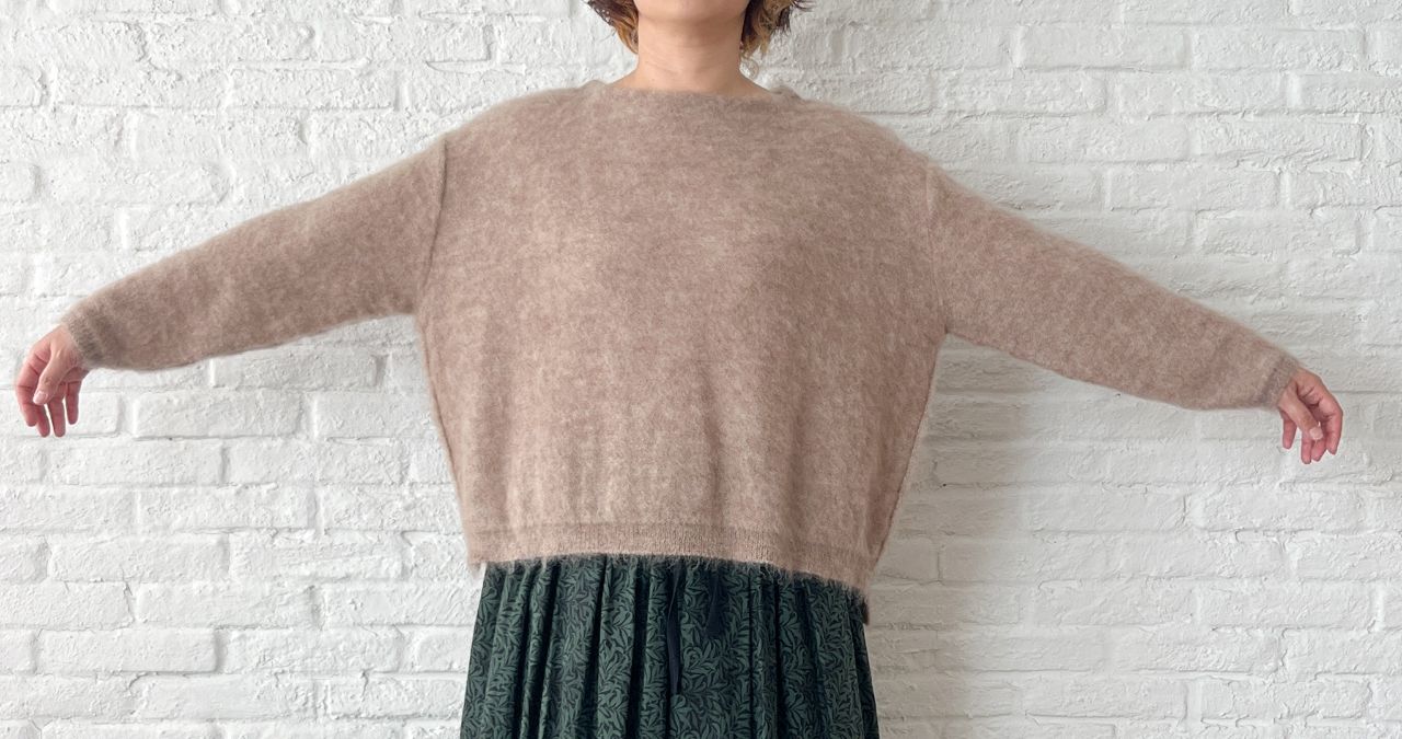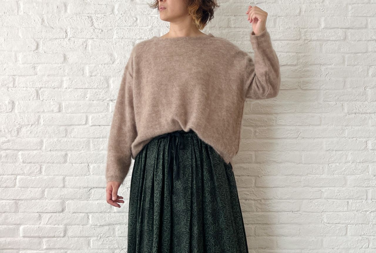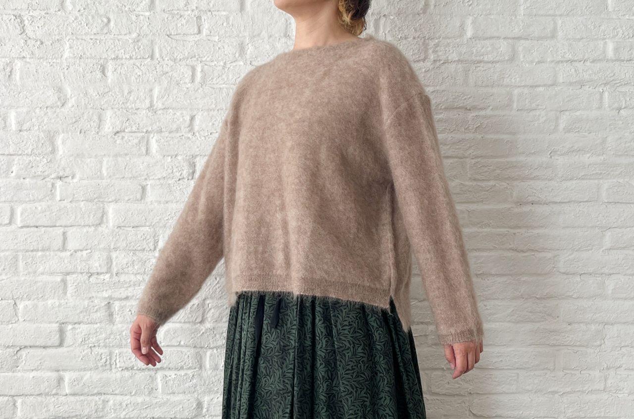 先程のプルオーバーと同シリーズの、キッドモヘアニット。