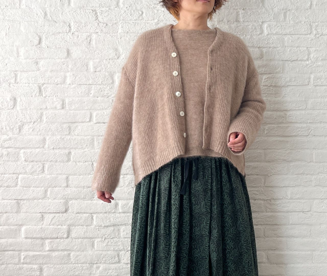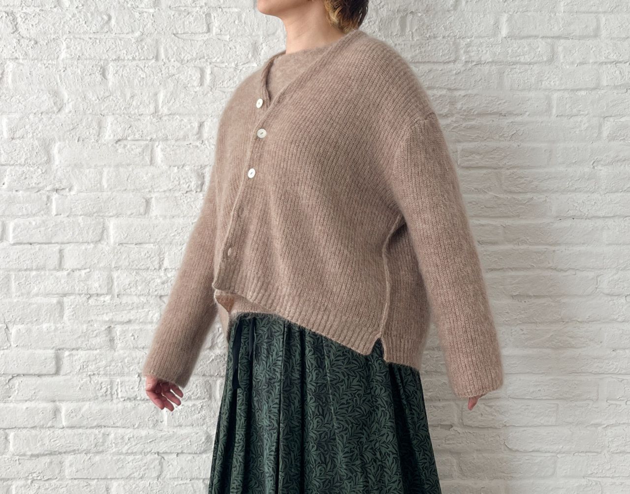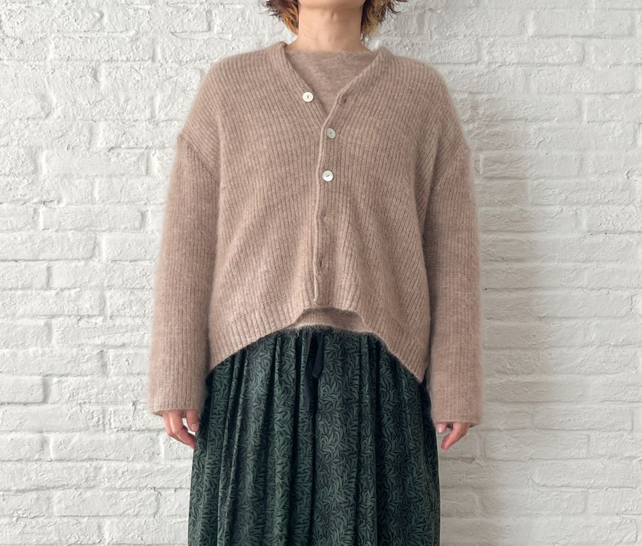 先程のプルオーバーと同シリーズの、キッドモヘアニット。