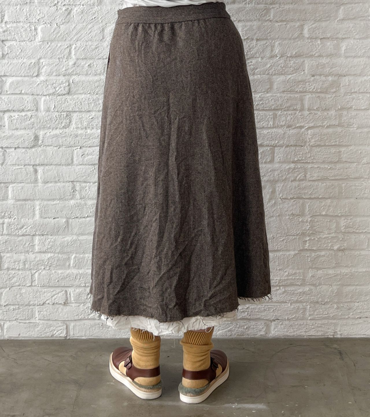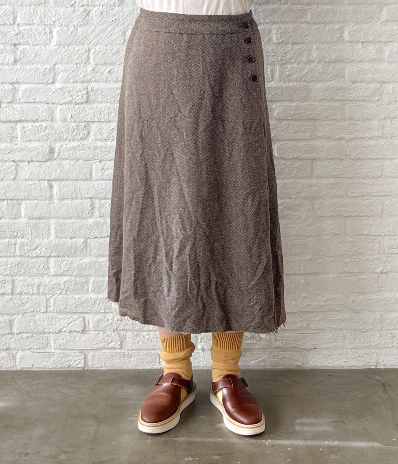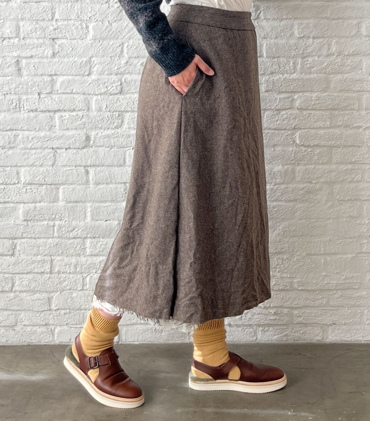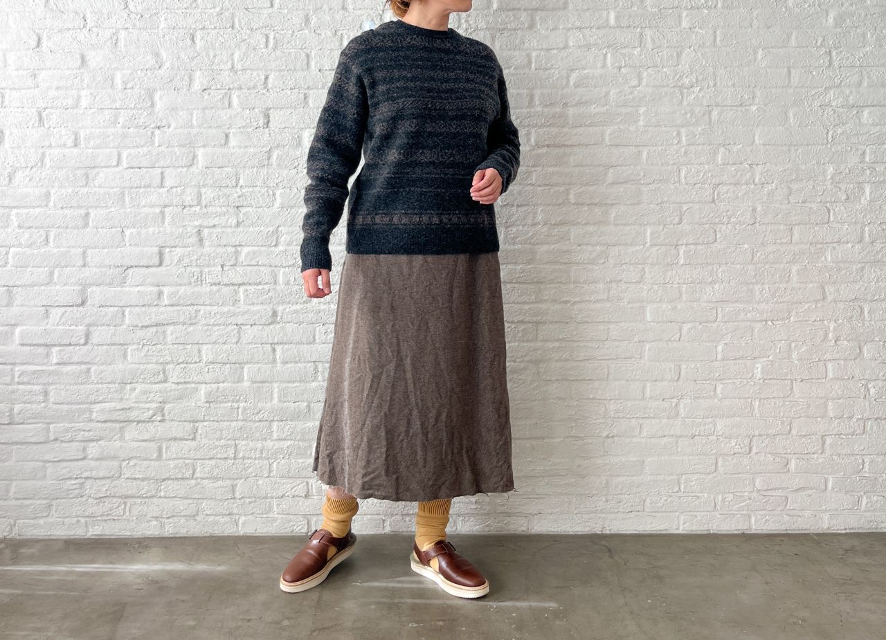 no.7382【期間限定!10%OFF】ECO WOOLヘリンボン セミフレアースカート
