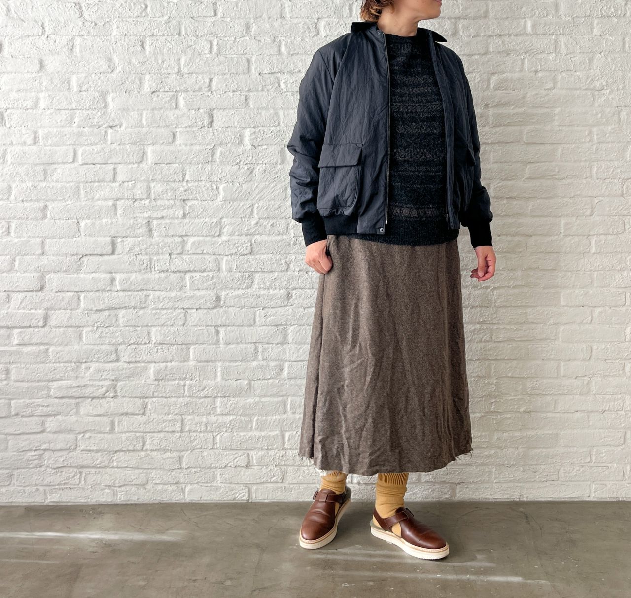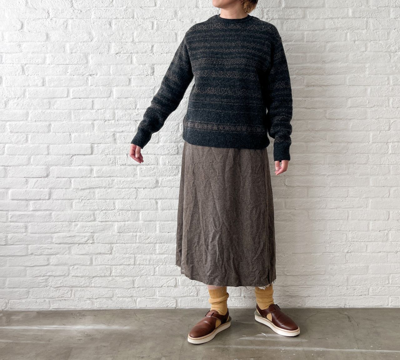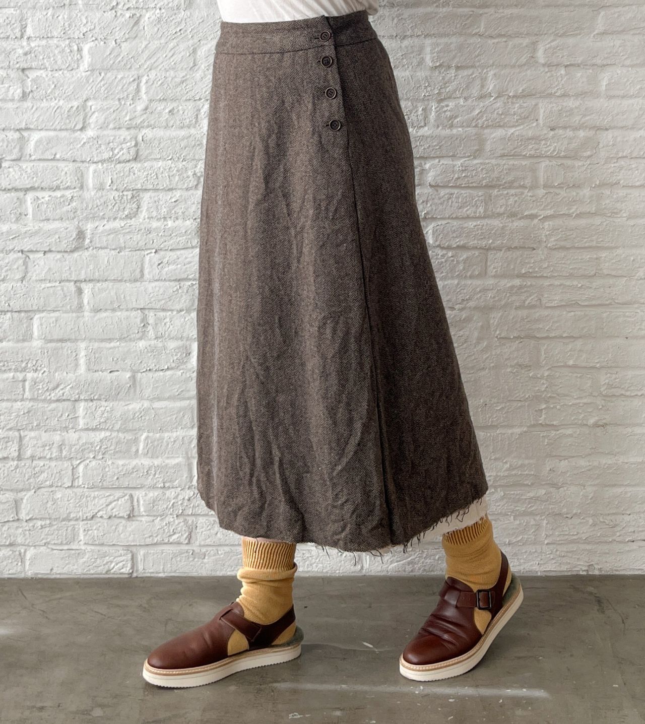 no.7382【期間限定!10%OFF】ECO WOOLヘリンボン セミフレアースカート