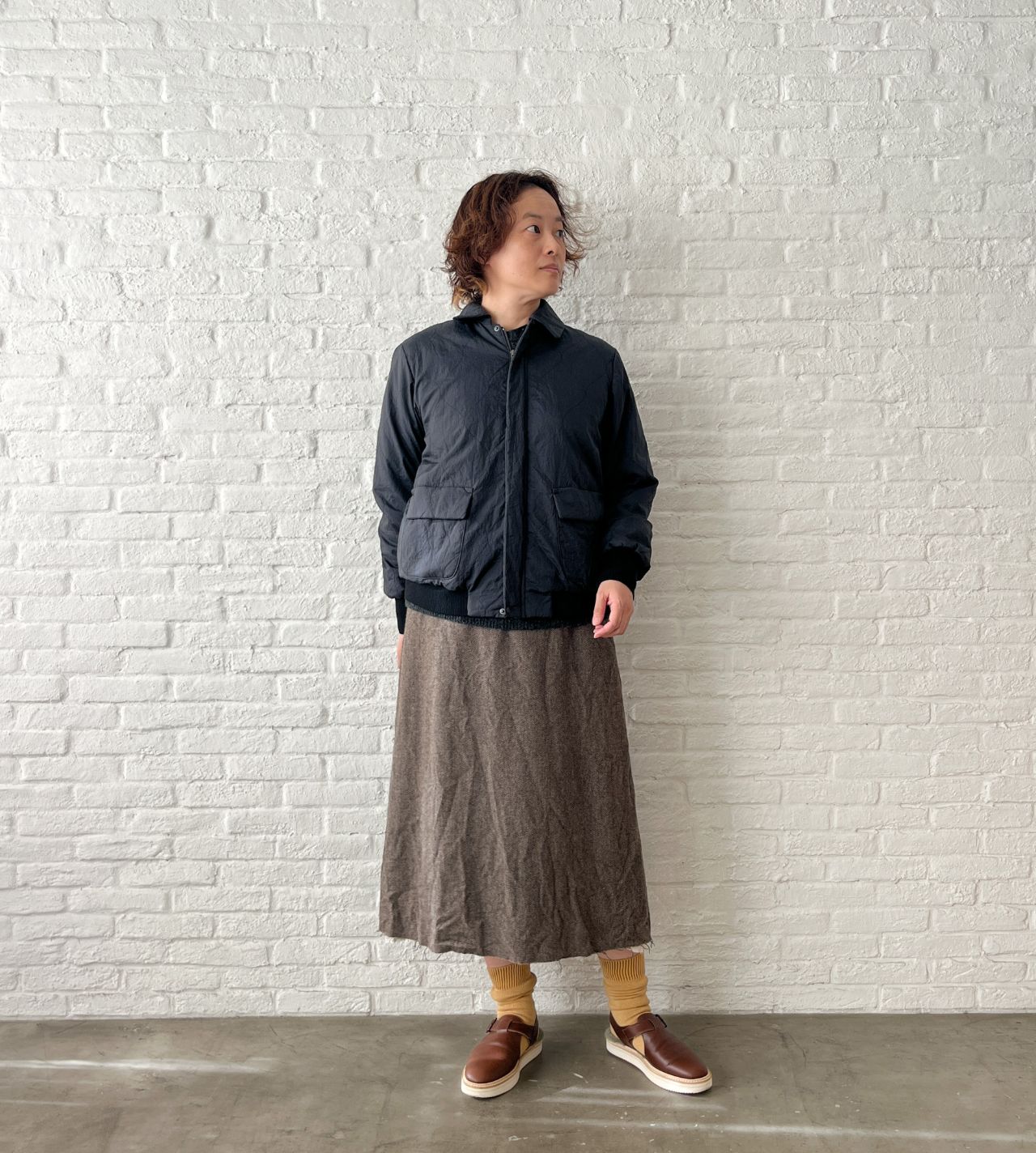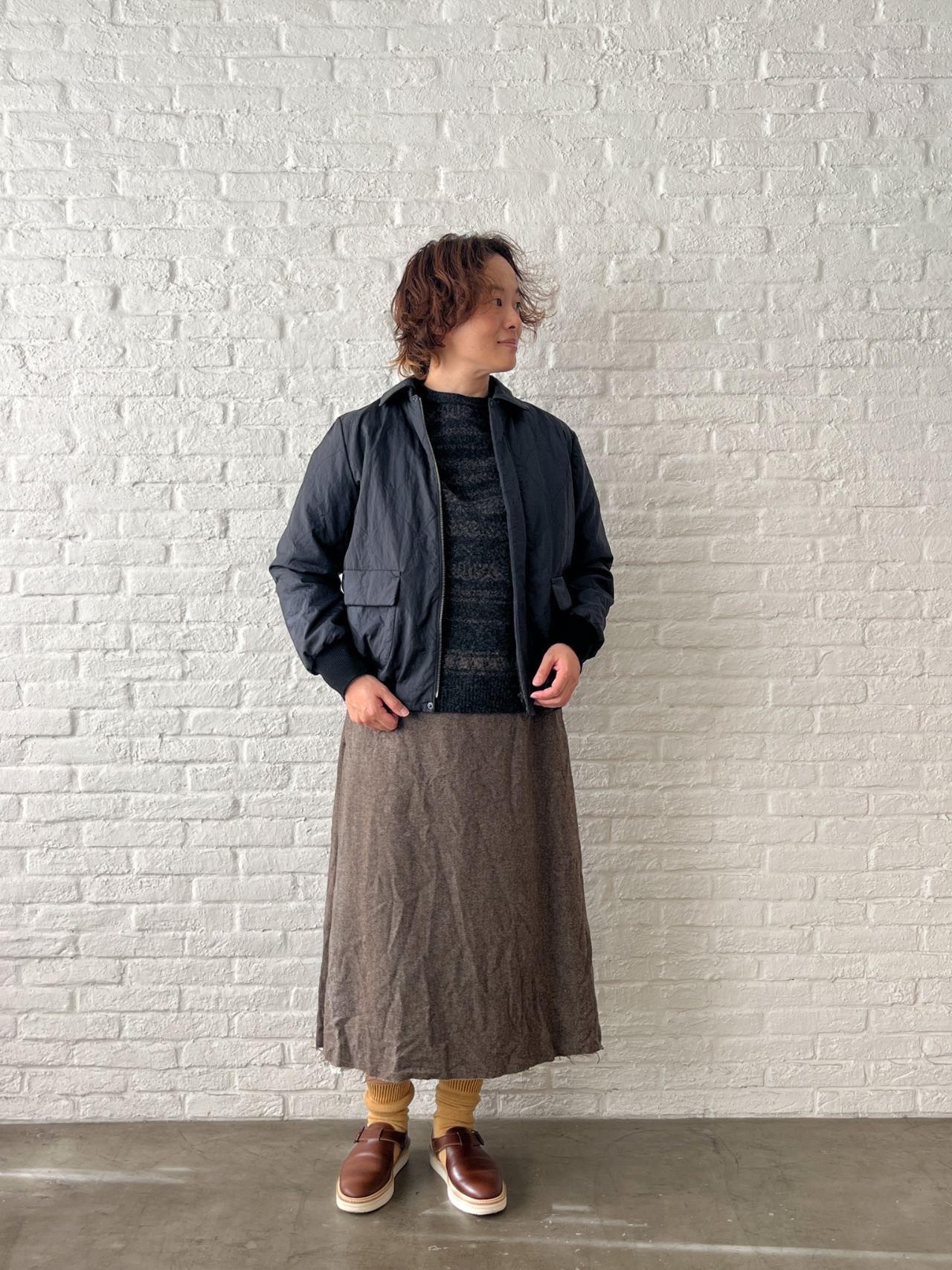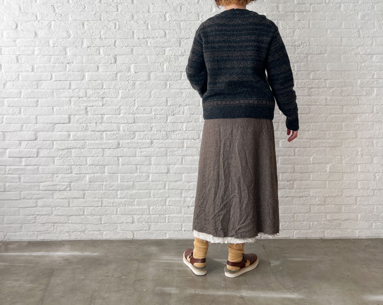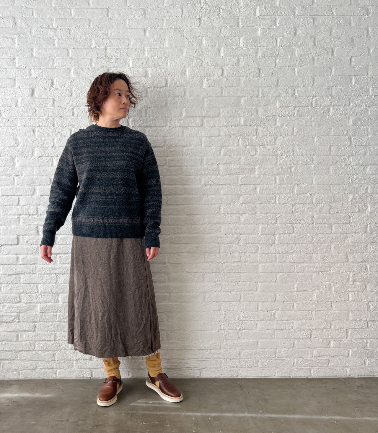 no.7382【期間限定!10%OFF】ECO WOOLヘリンボン セミフレアースカート
