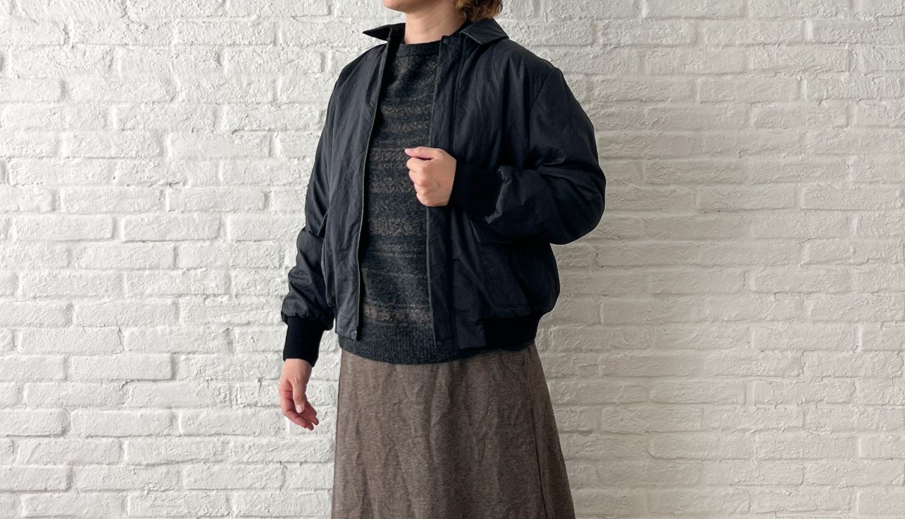 裾や袖口のリブがカジュアル感を演出しています。