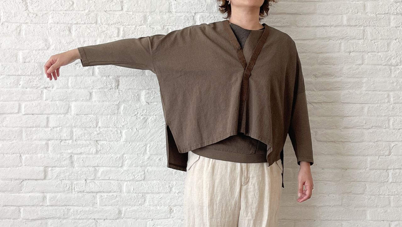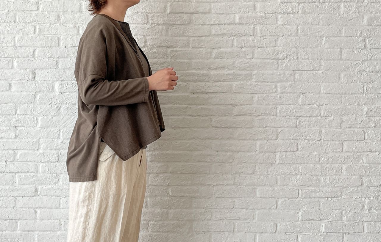 カットソーと同じシリーズのカーディガンは、後ろが長めでお尻にかかる位の着丈です。