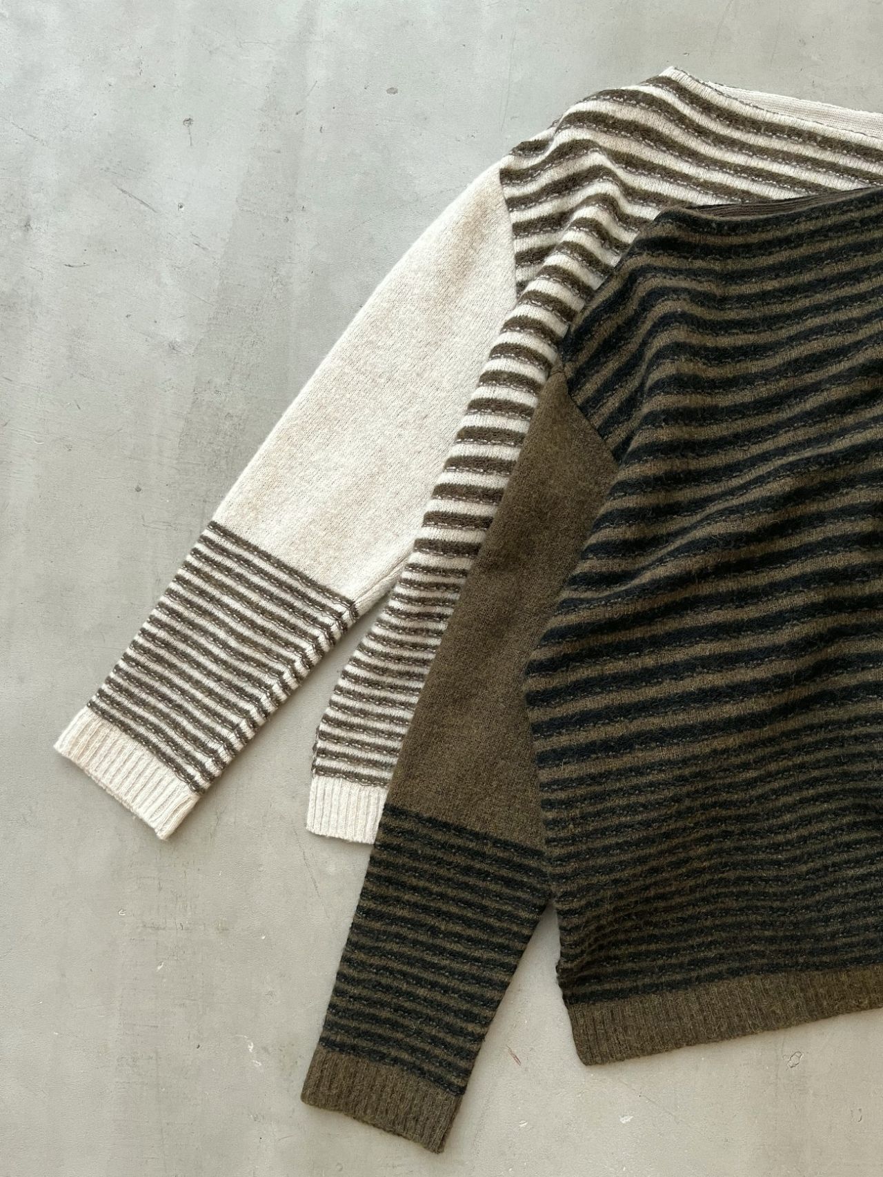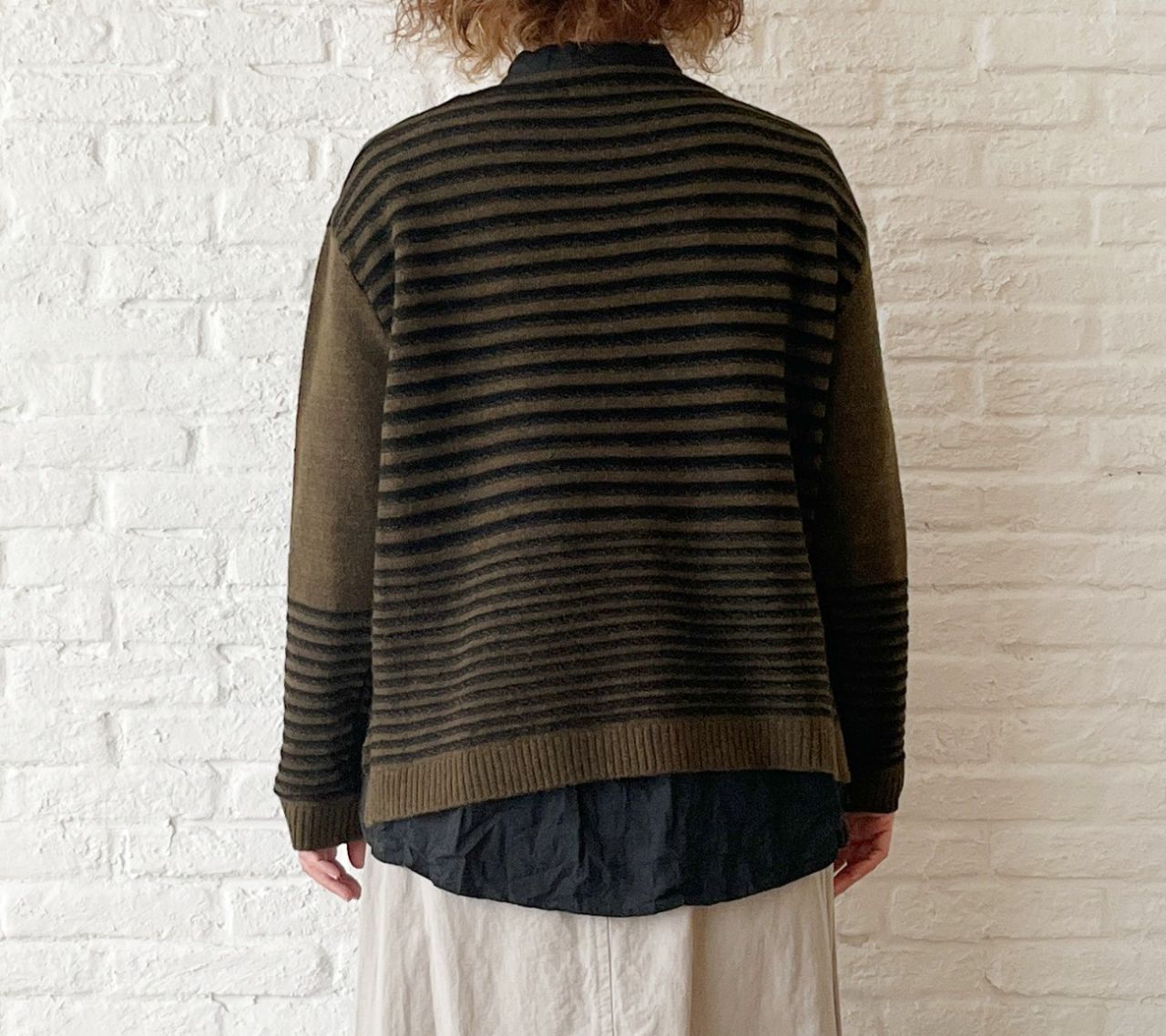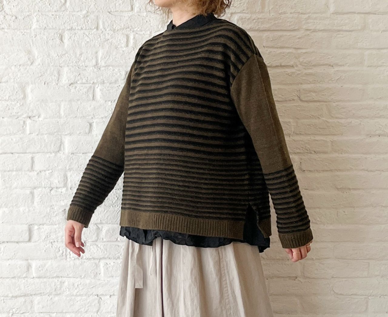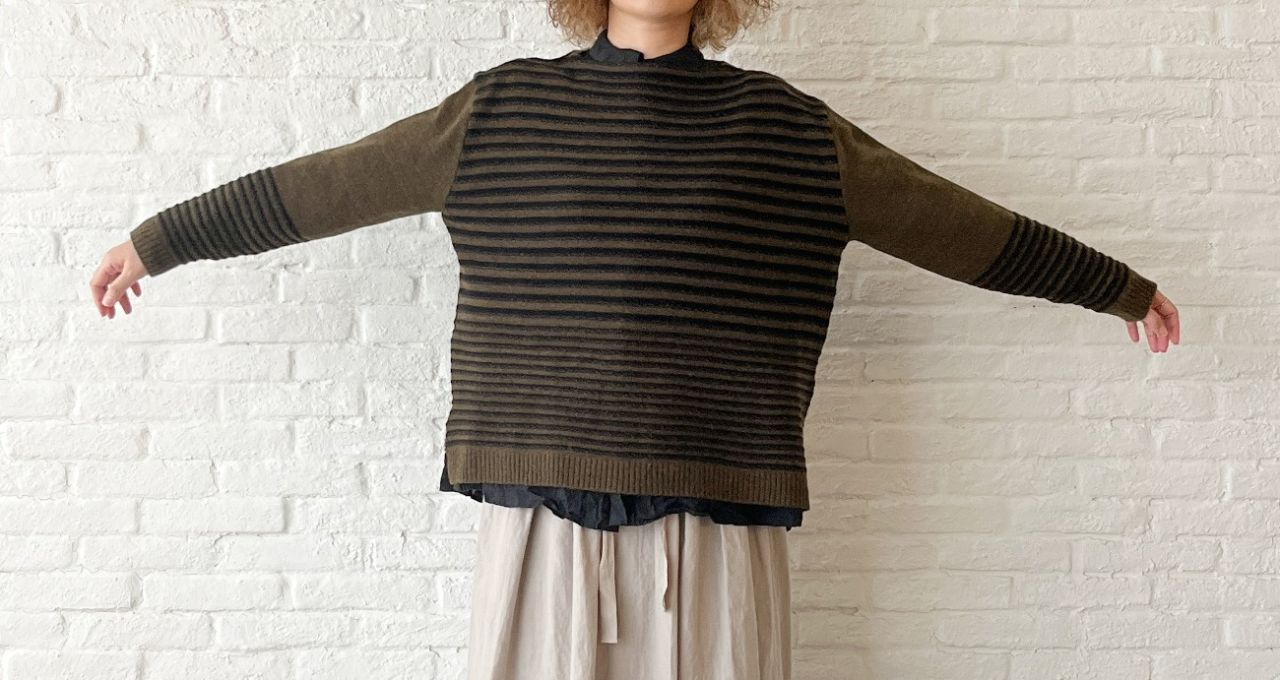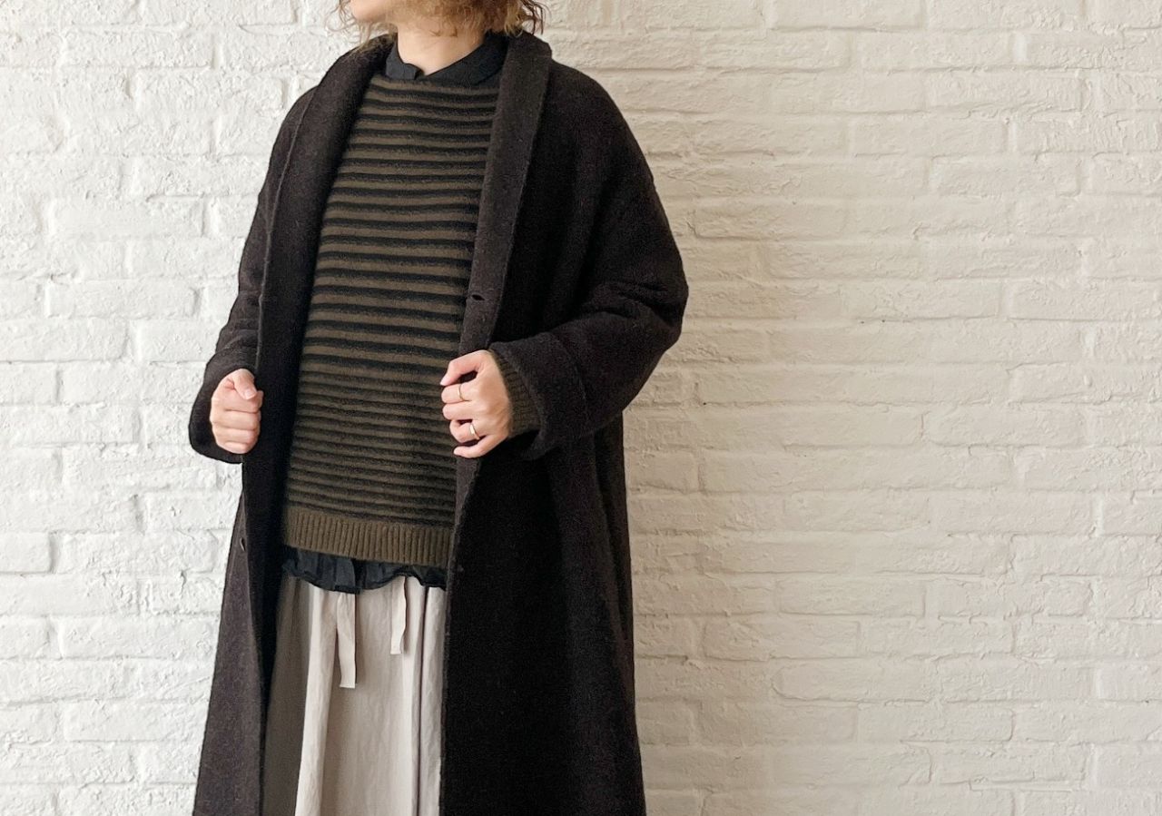本日は再入荷したコートと合わせて、おすすめボーダーニットのご紹介です。