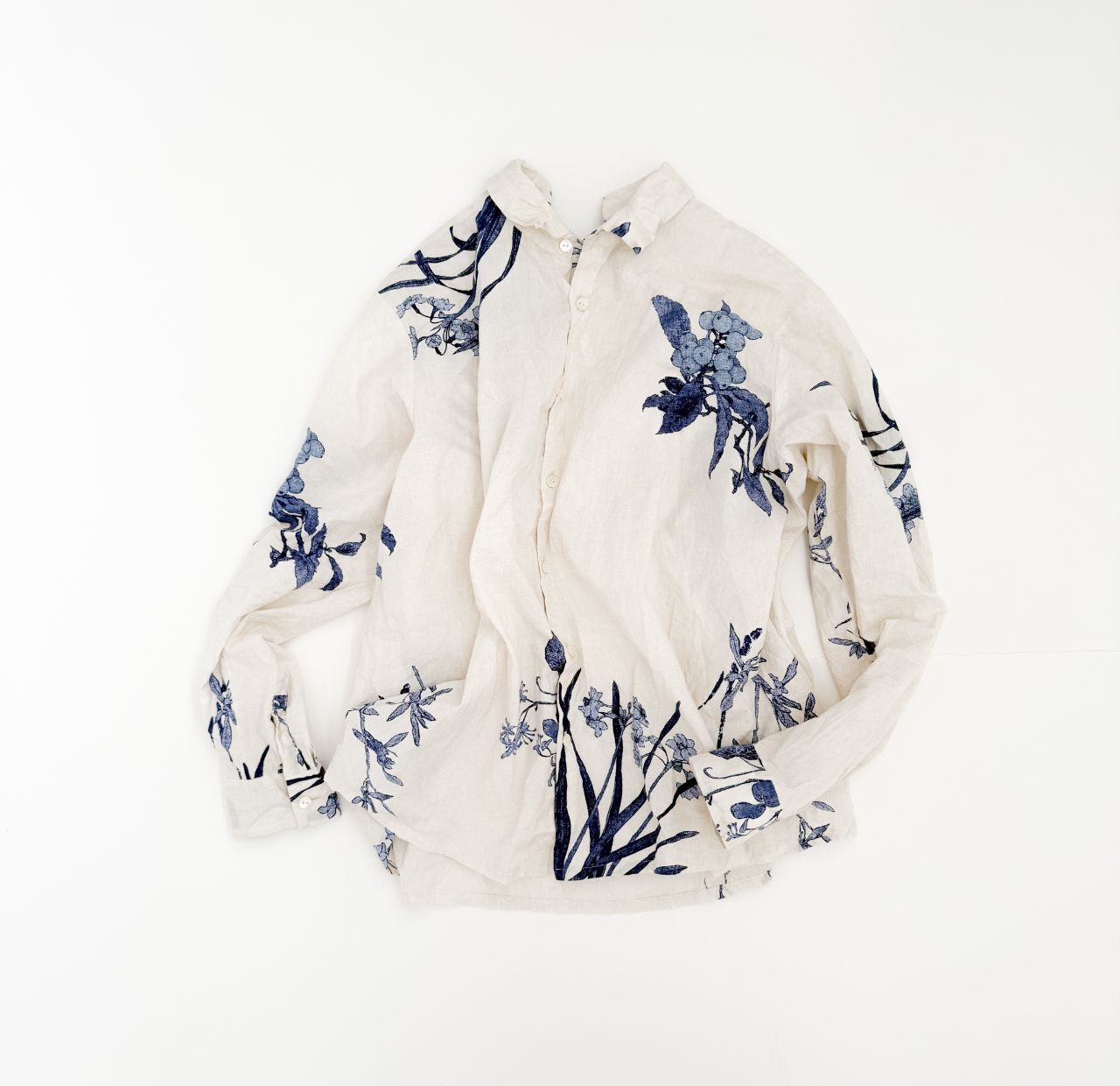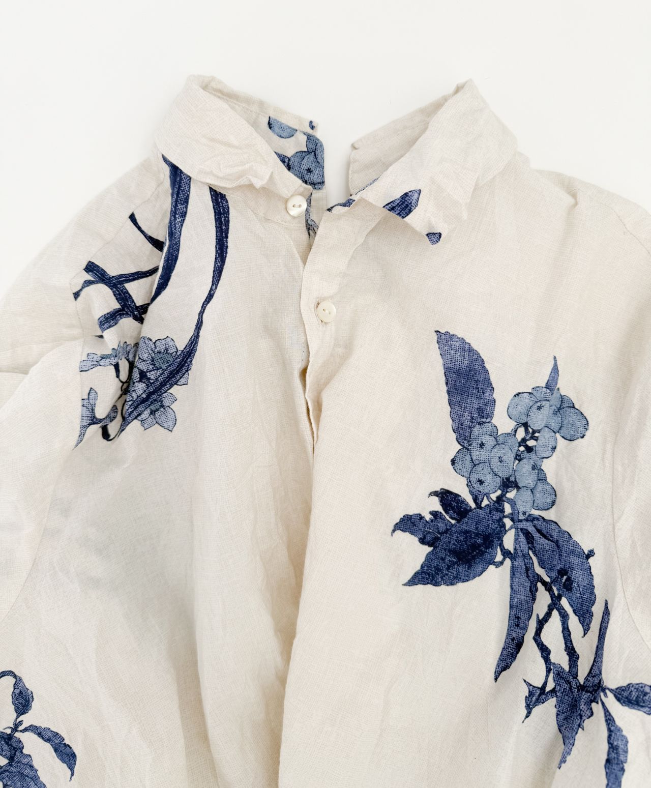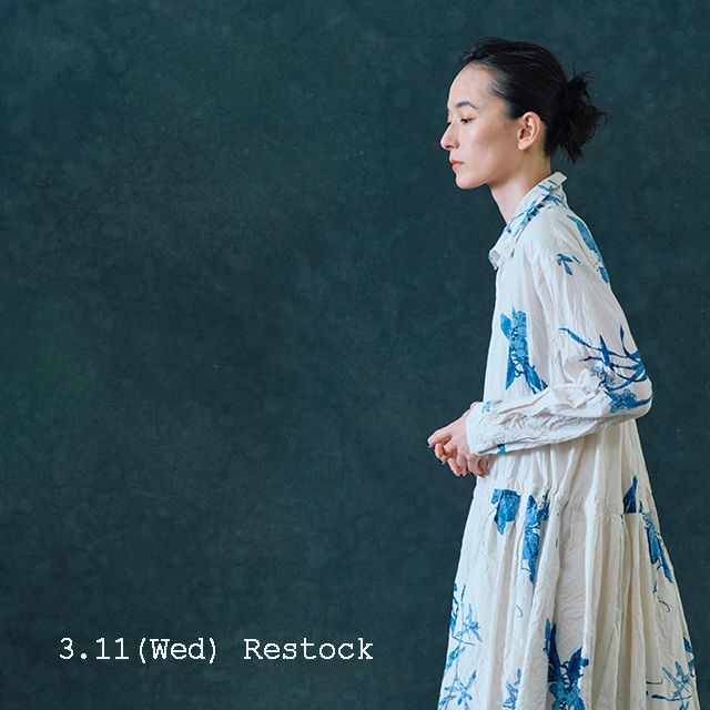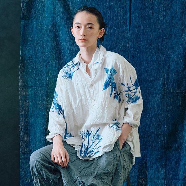 コットンローン素材にあえてシルケット加工を施さず、しぼ感を表現し柔らかい風合いに仕上げている。