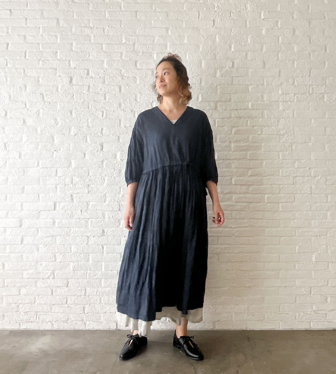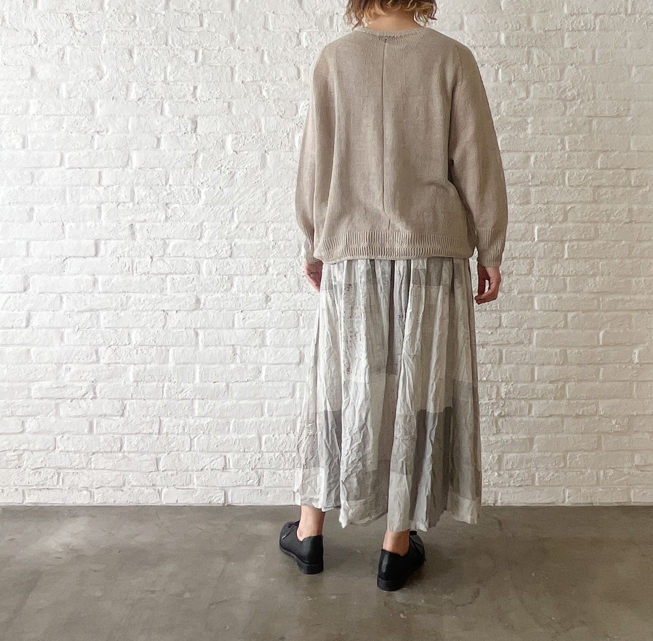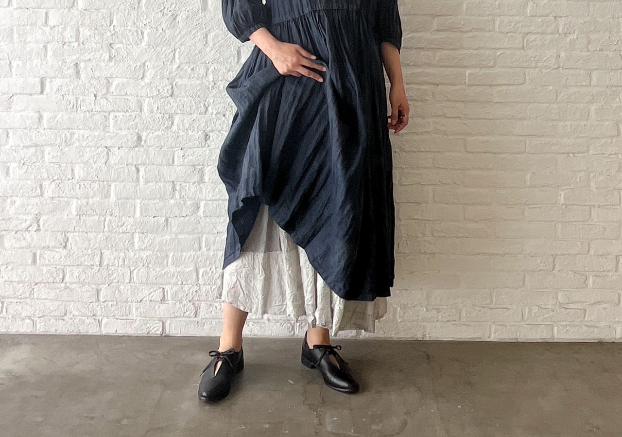 スカートは裏地なしのため、軽くてごわつかないので、裏地のない ワンピース にレイヤードとしても。