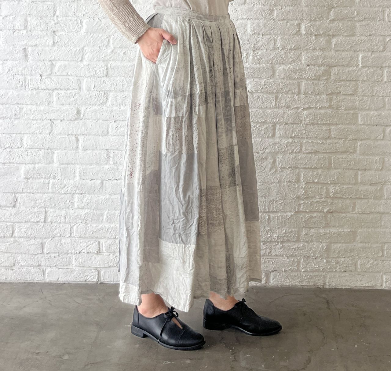 ご好評いただいている、Tsugihagiプリントのロングスカート。