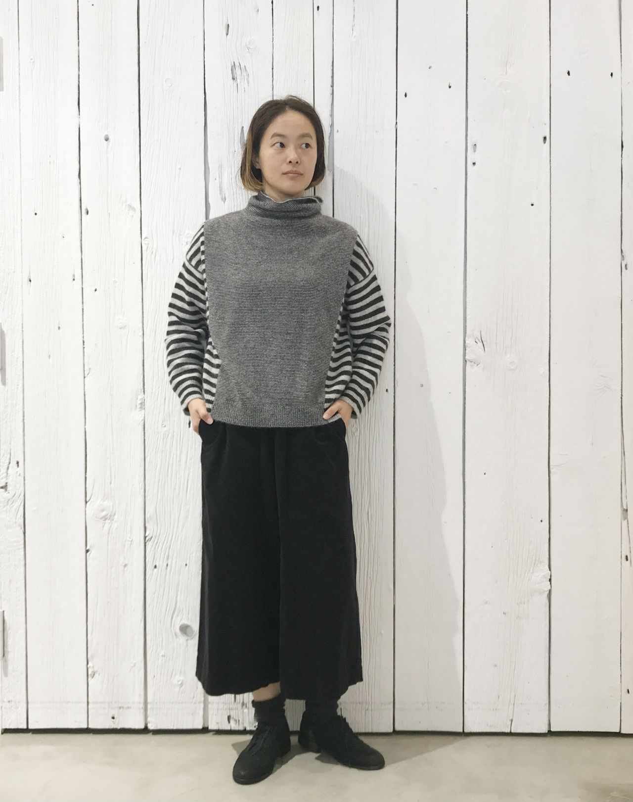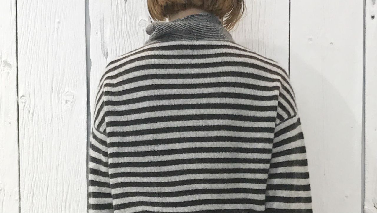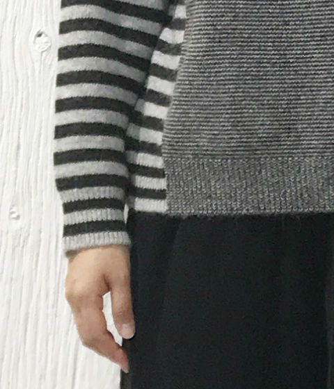 細さの異なるボーダー柄の切替ニット。