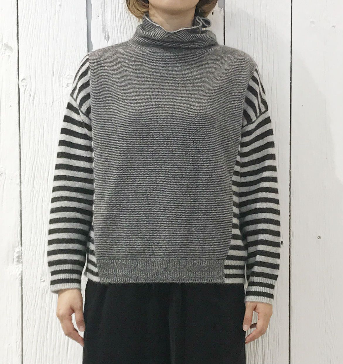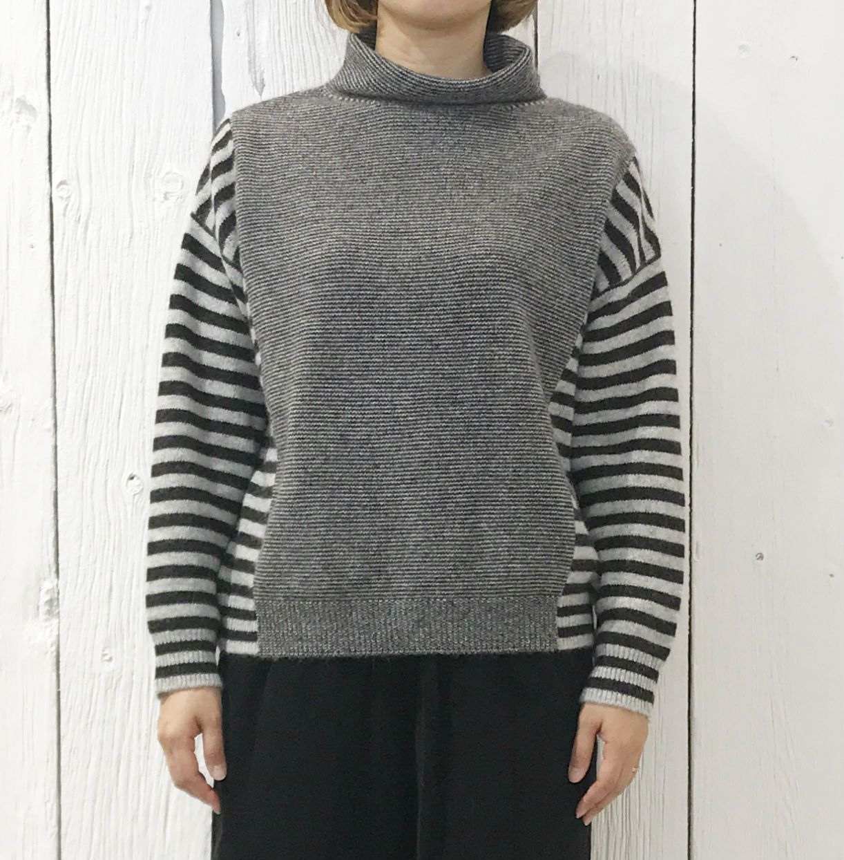 no.2066 【期間限定!20%OFF】アンゴラ混ボーダー切り替えオフタートル プルオーバー