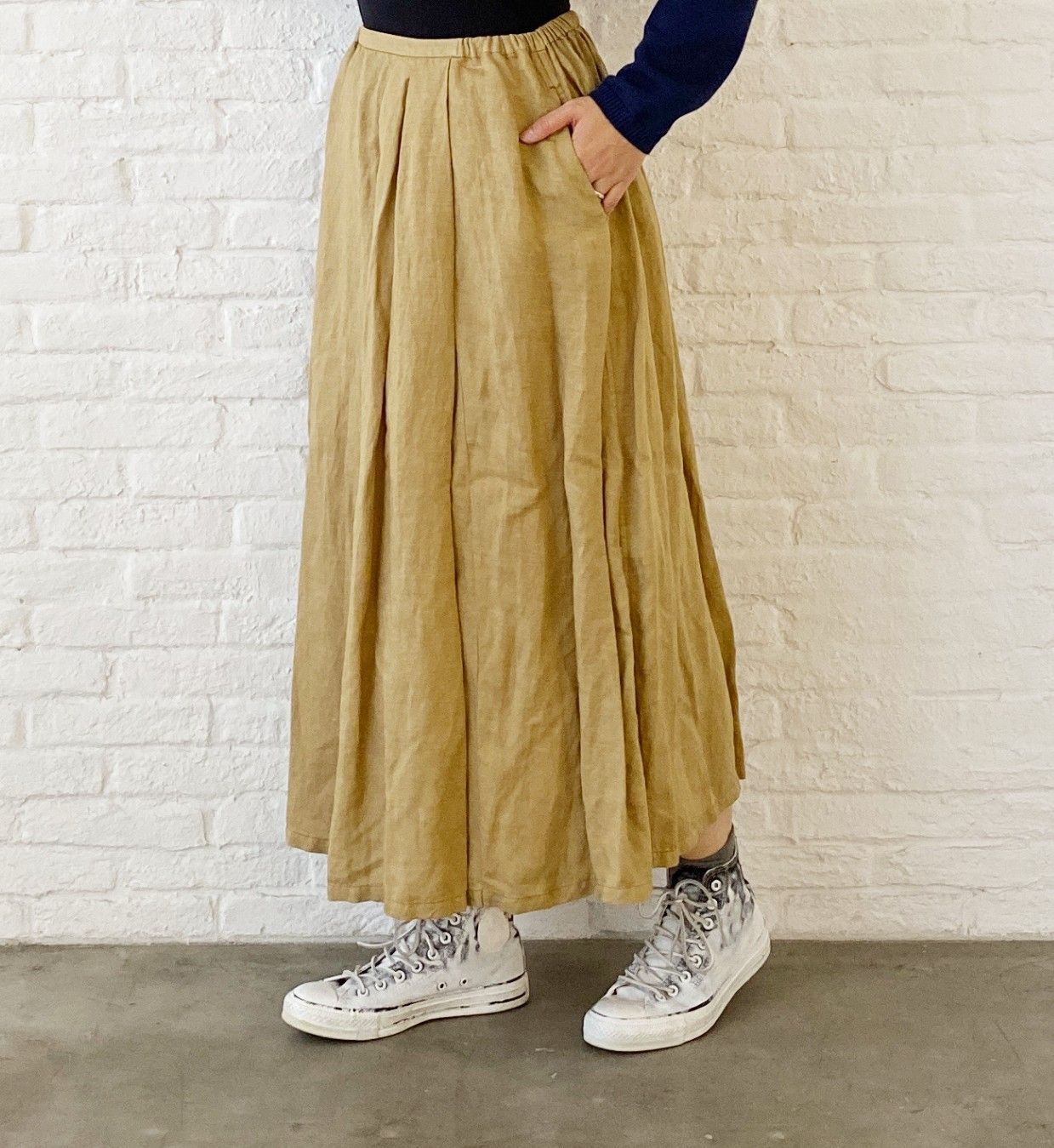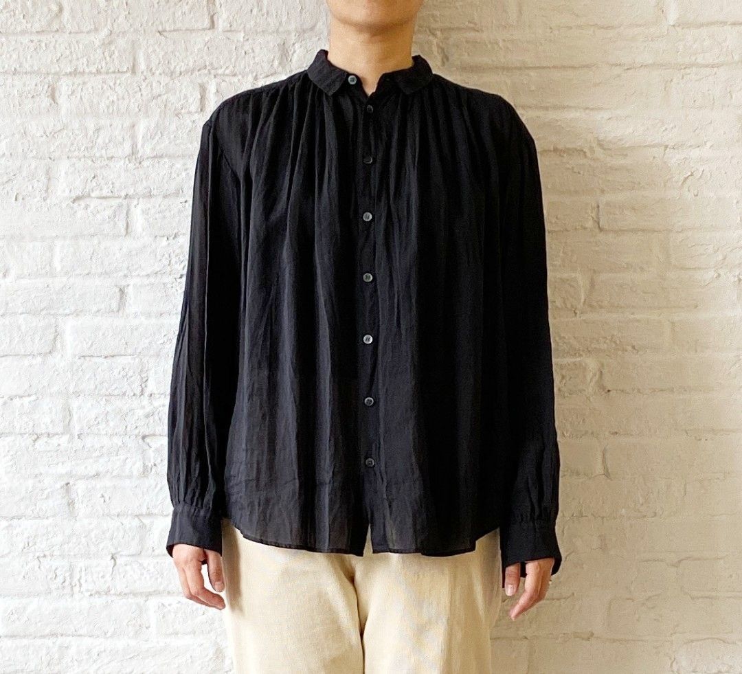 ギャザーはたっぷり入っていますが、テロッとした素材感なのでゴワつかず、重ね着にも◎。