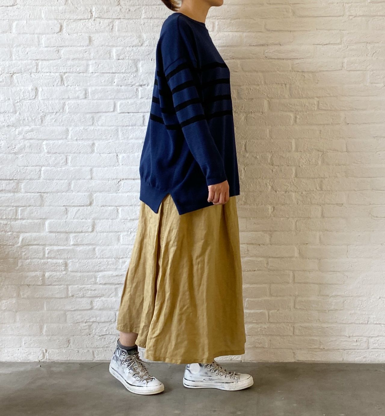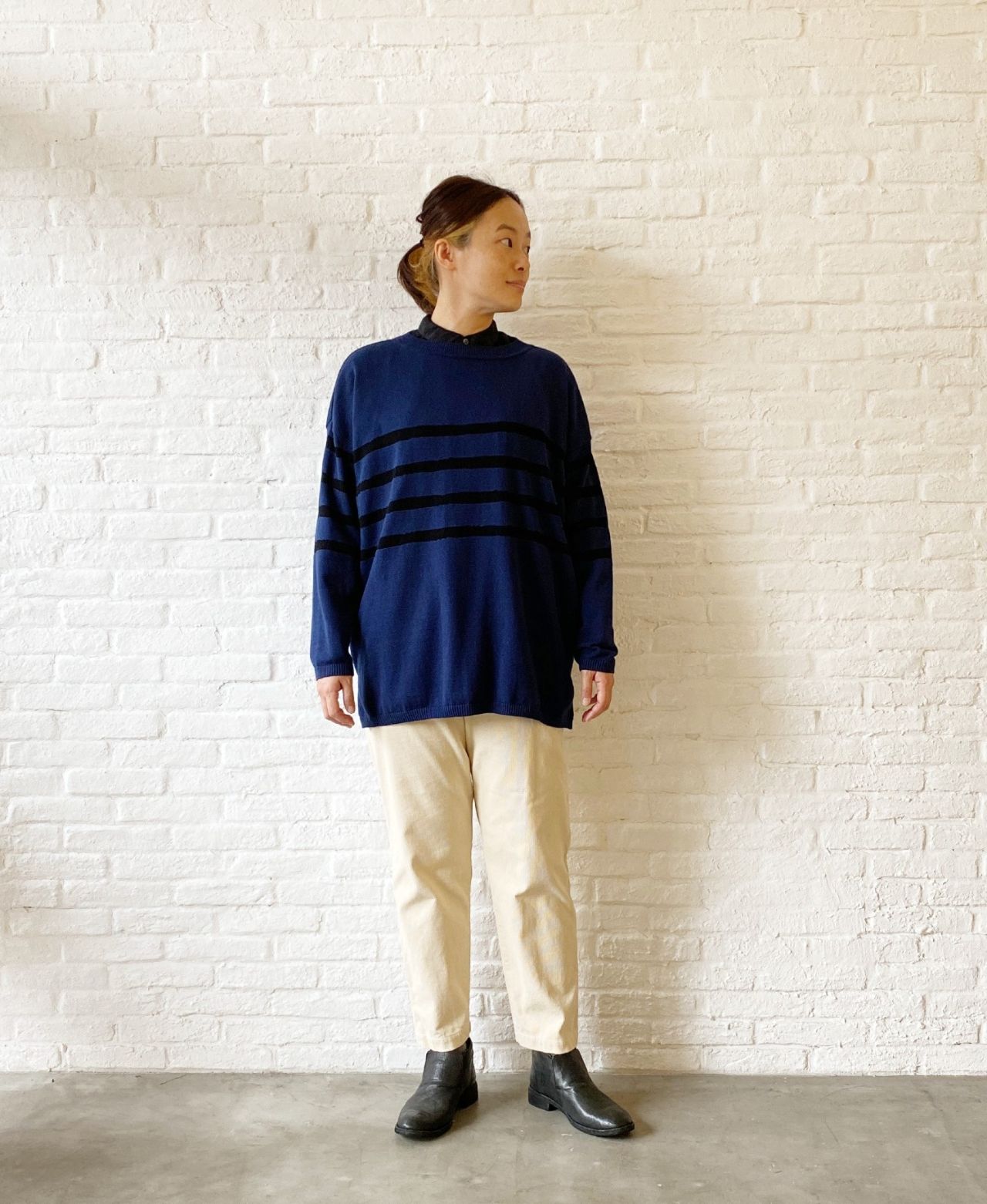 no.2162【2,300pt付与】カシミヤコットンボーダー ロングプルオーバー