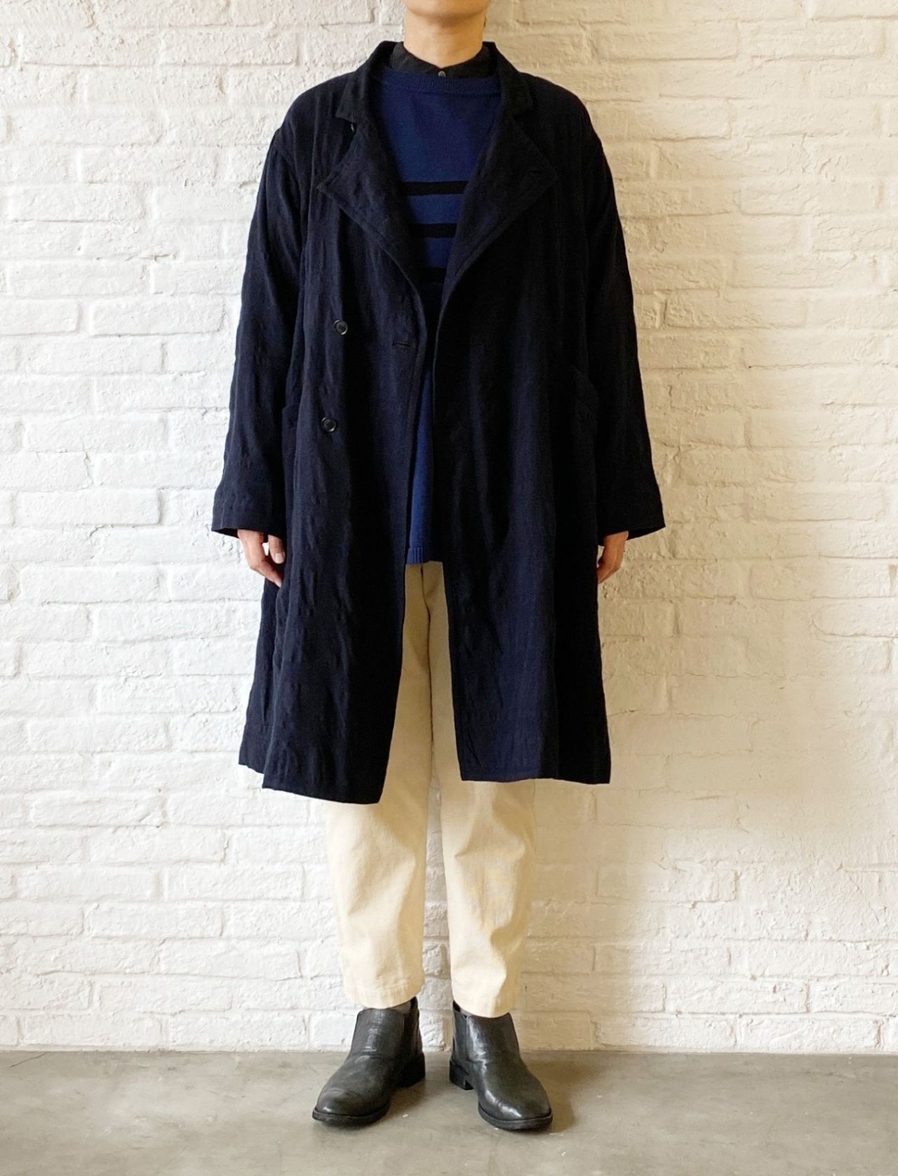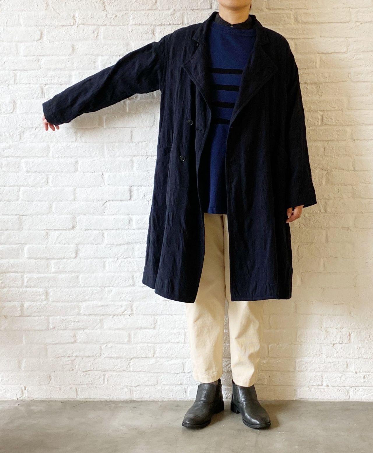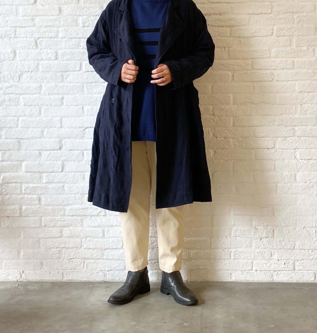 コートは、おしゃれ感が増してこなれた印象になるネイビー。