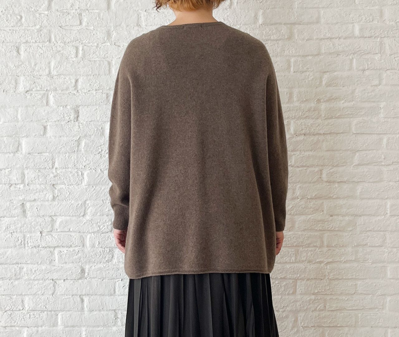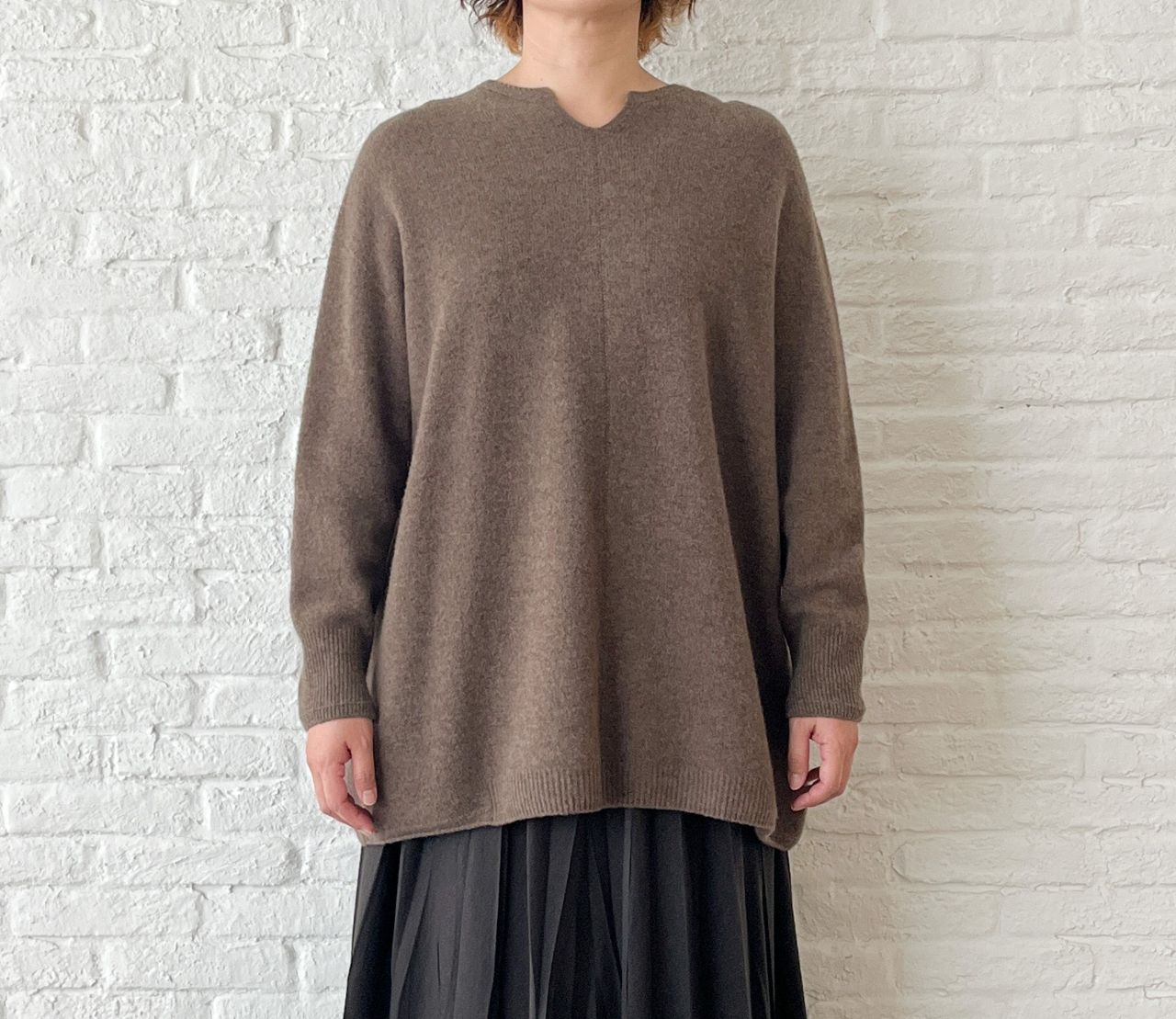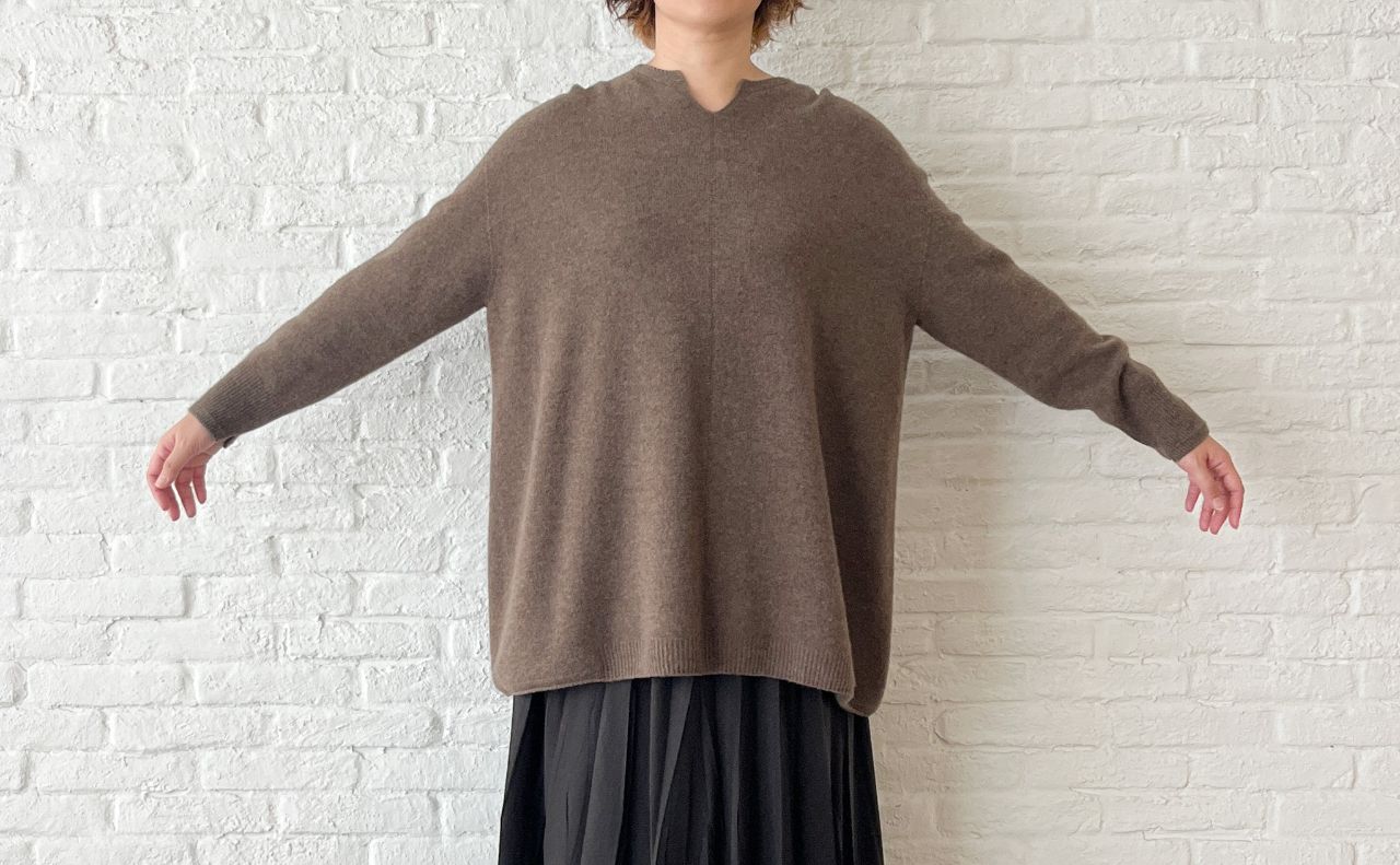 ファインウール スラッシュ襟ロングプルオーバー