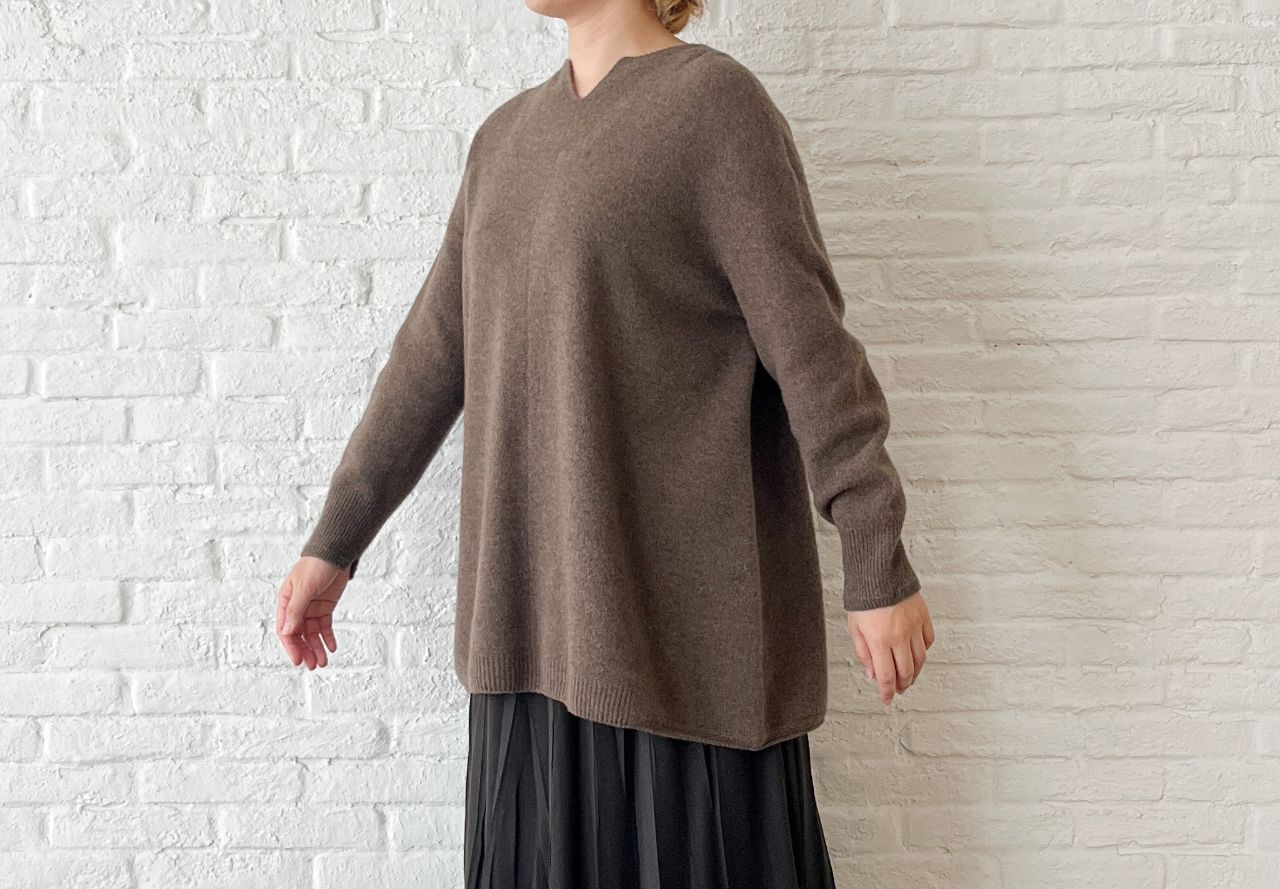 no.2603 ファインウール スラッシュ襟ロングプルオーバー