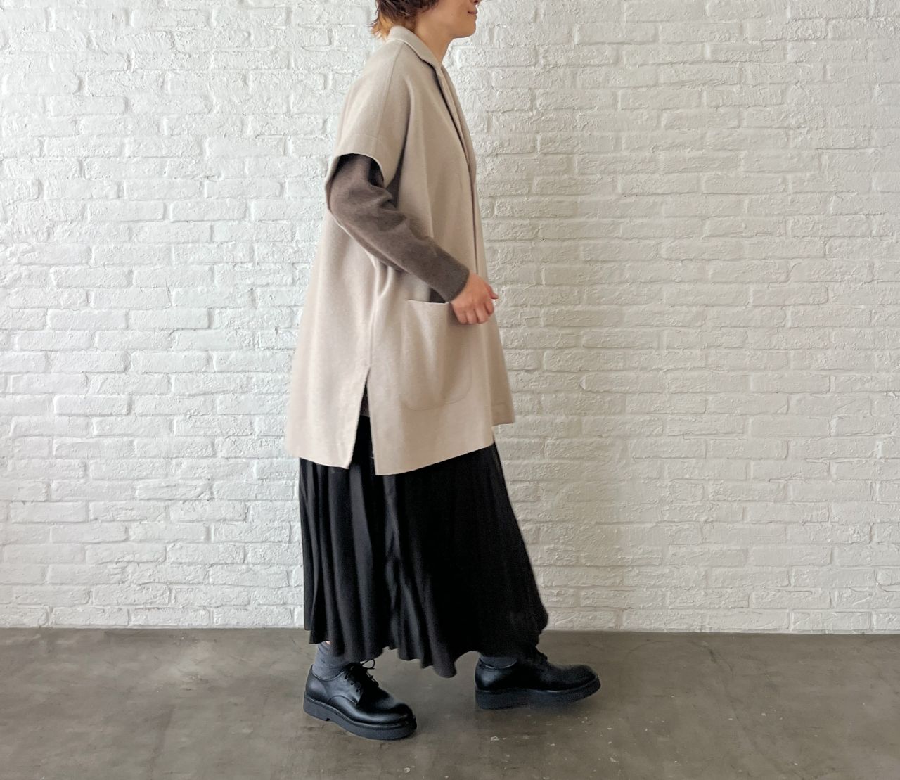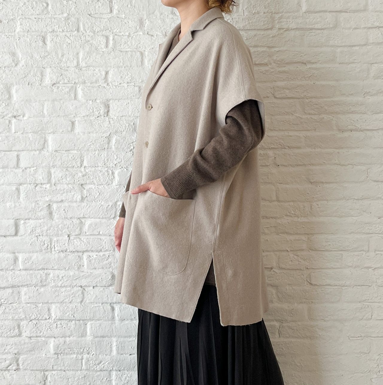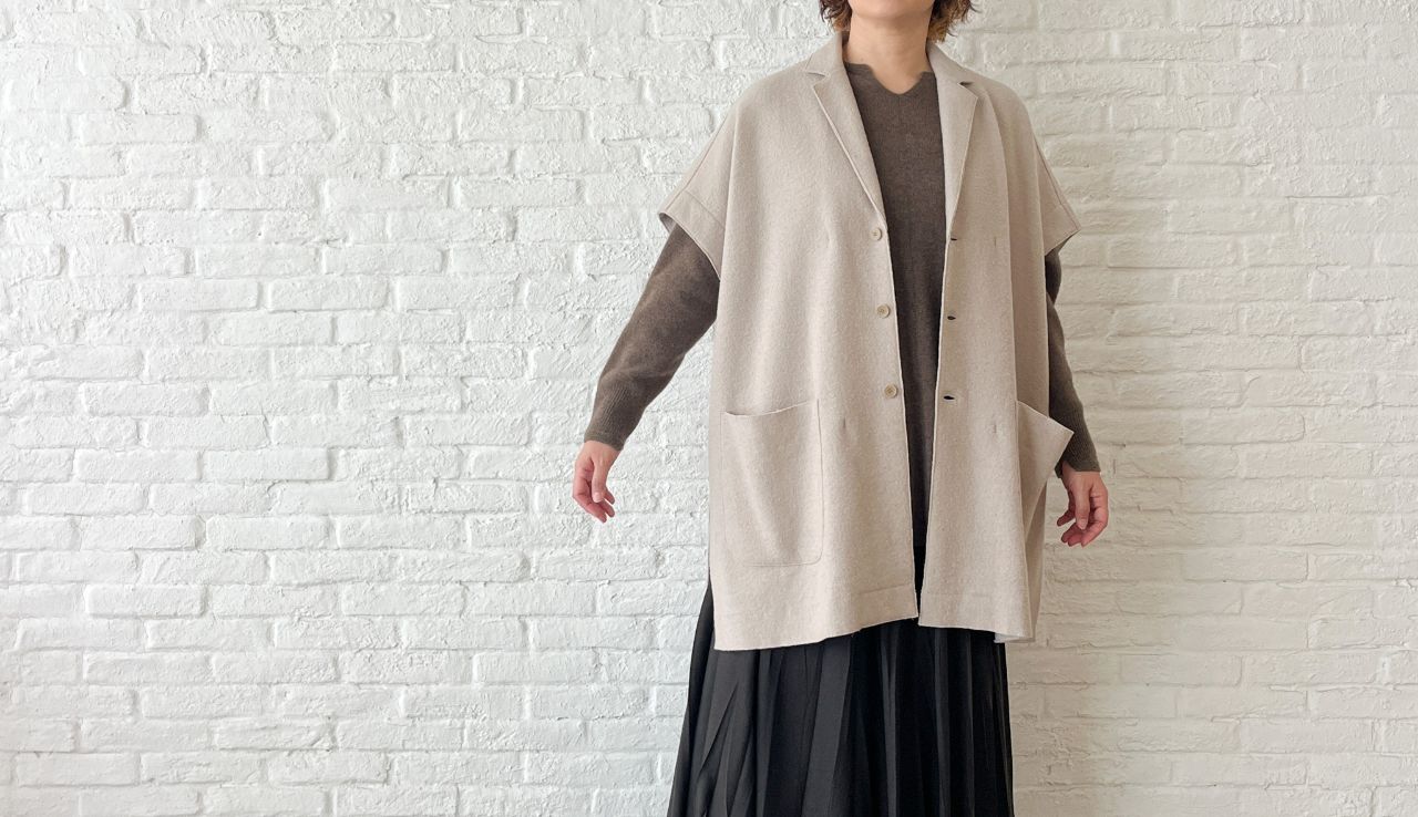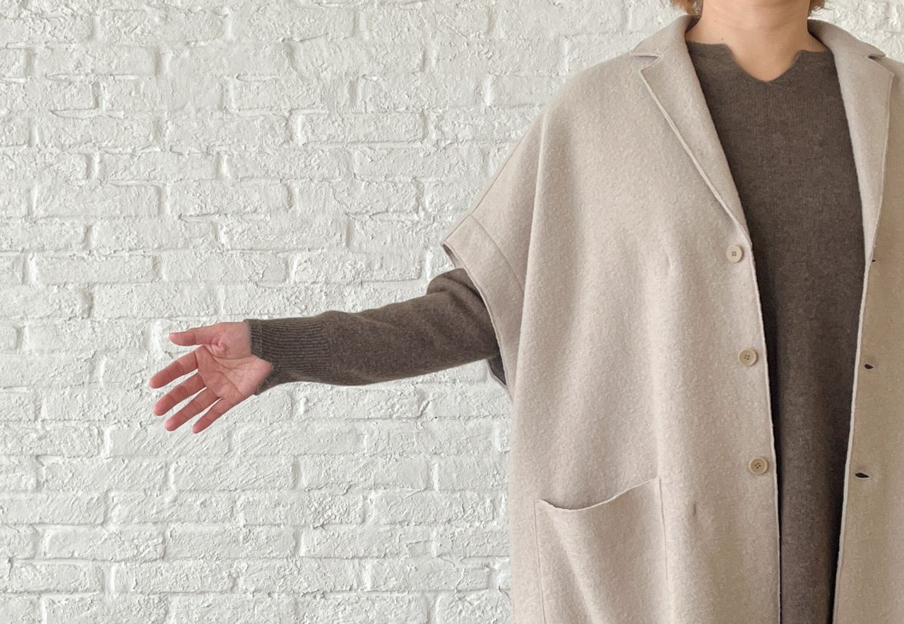 包み込むようなデザインでニットやワンピース、ジャケットの上からでも◎。