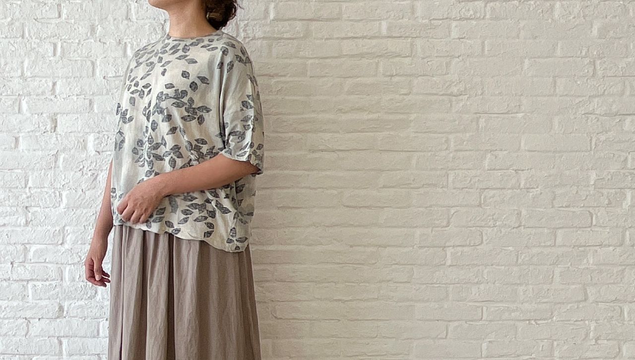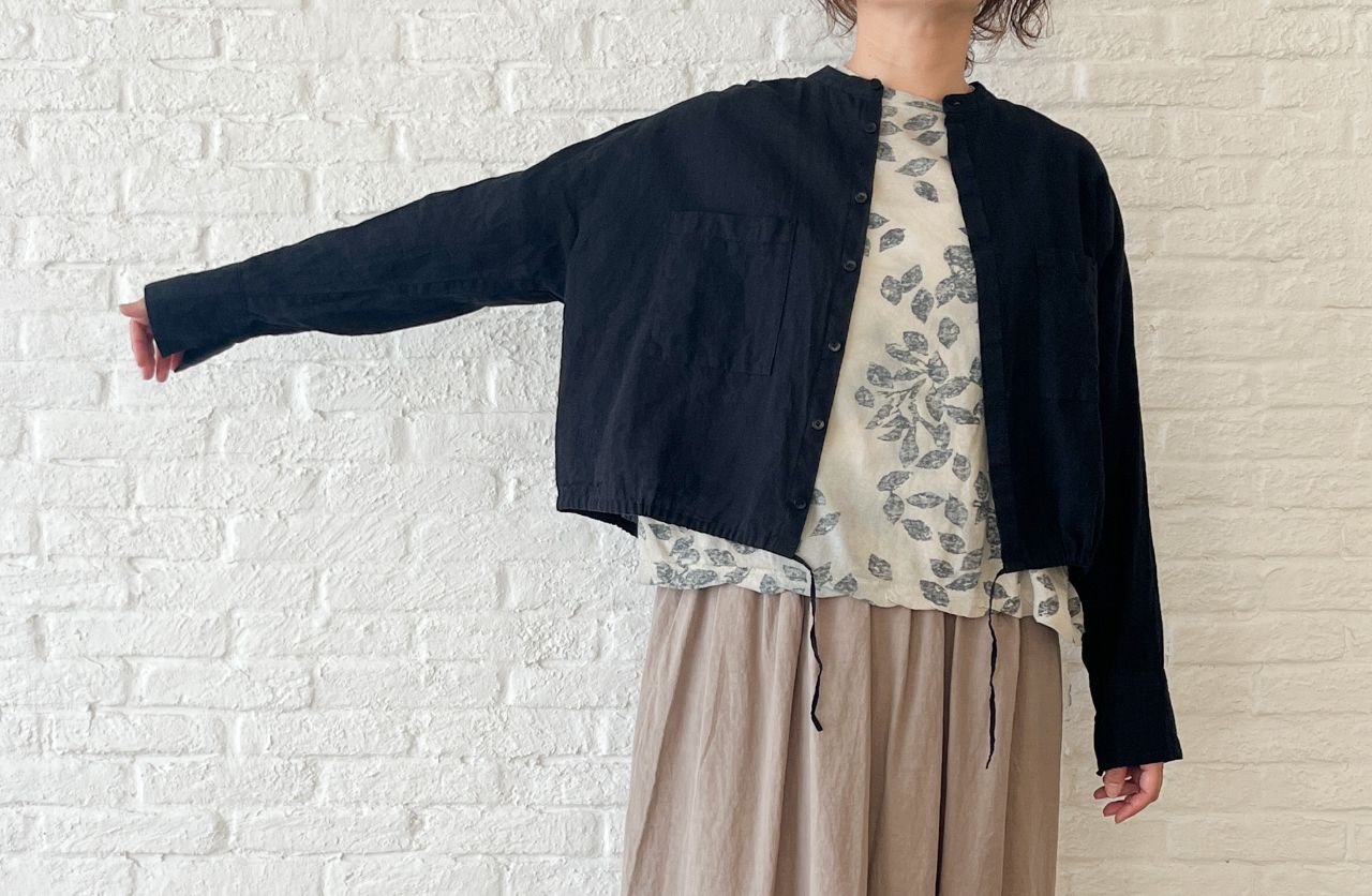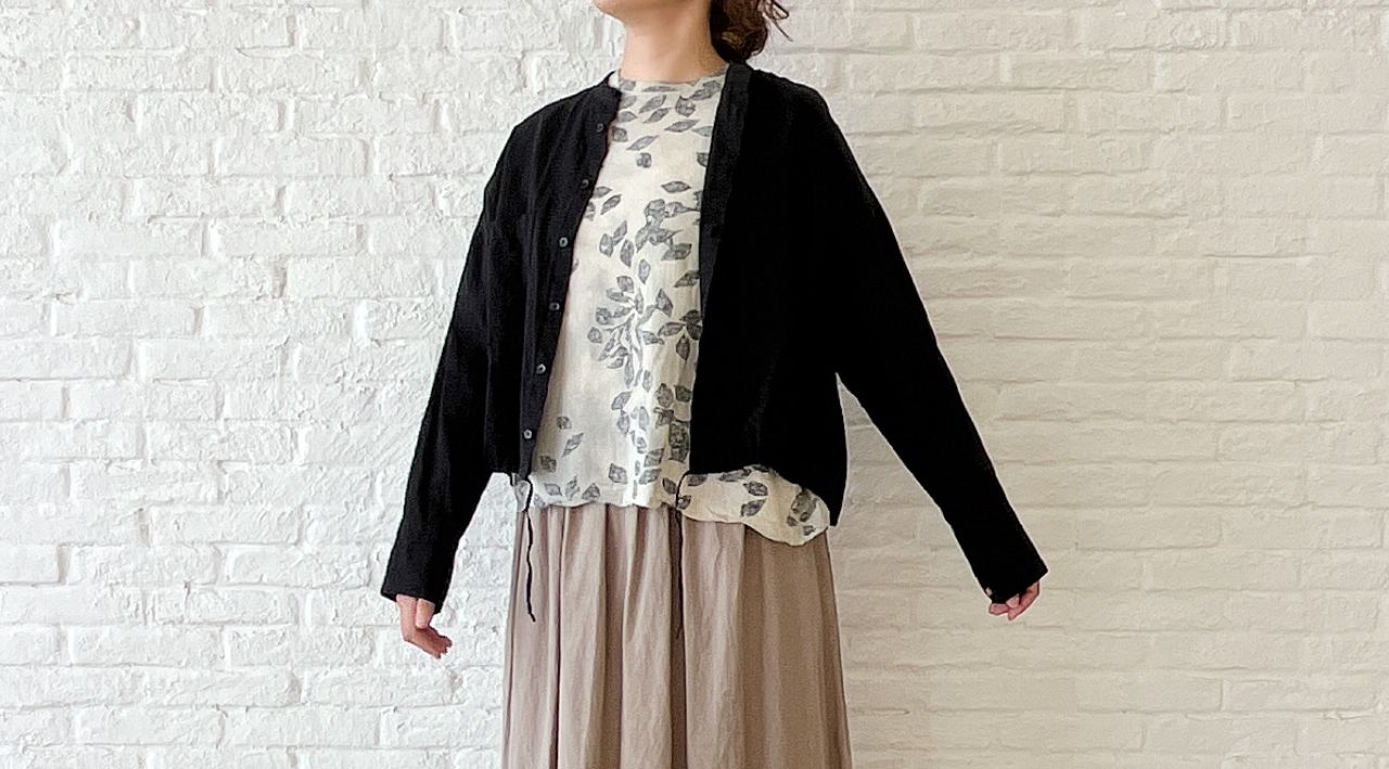 秋口でも着やすいような肘にかかる長めの袖丈にしました。