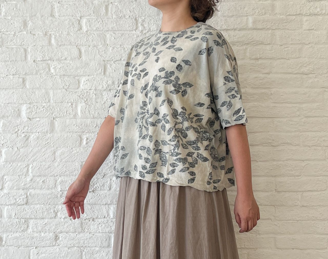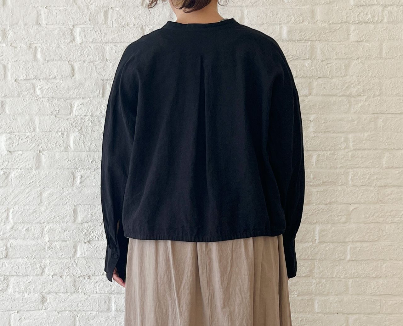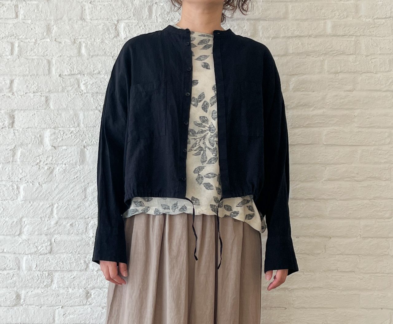 秋口でも着やすいような肘にかかる長めの袖丈にしました。