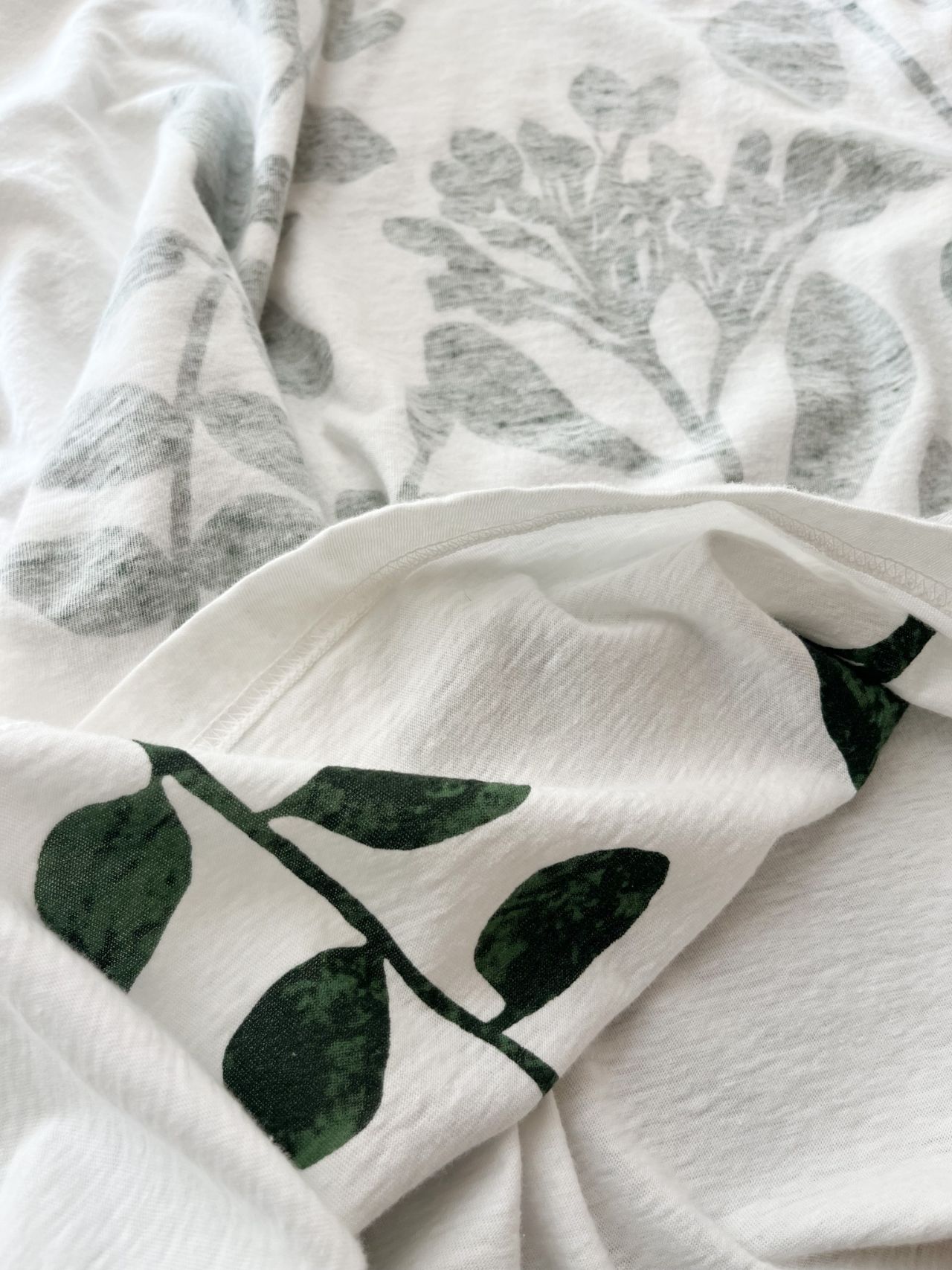 プリントした植物柄をあえて裏側にして、影のようにうっすらさりげない柄にしました。