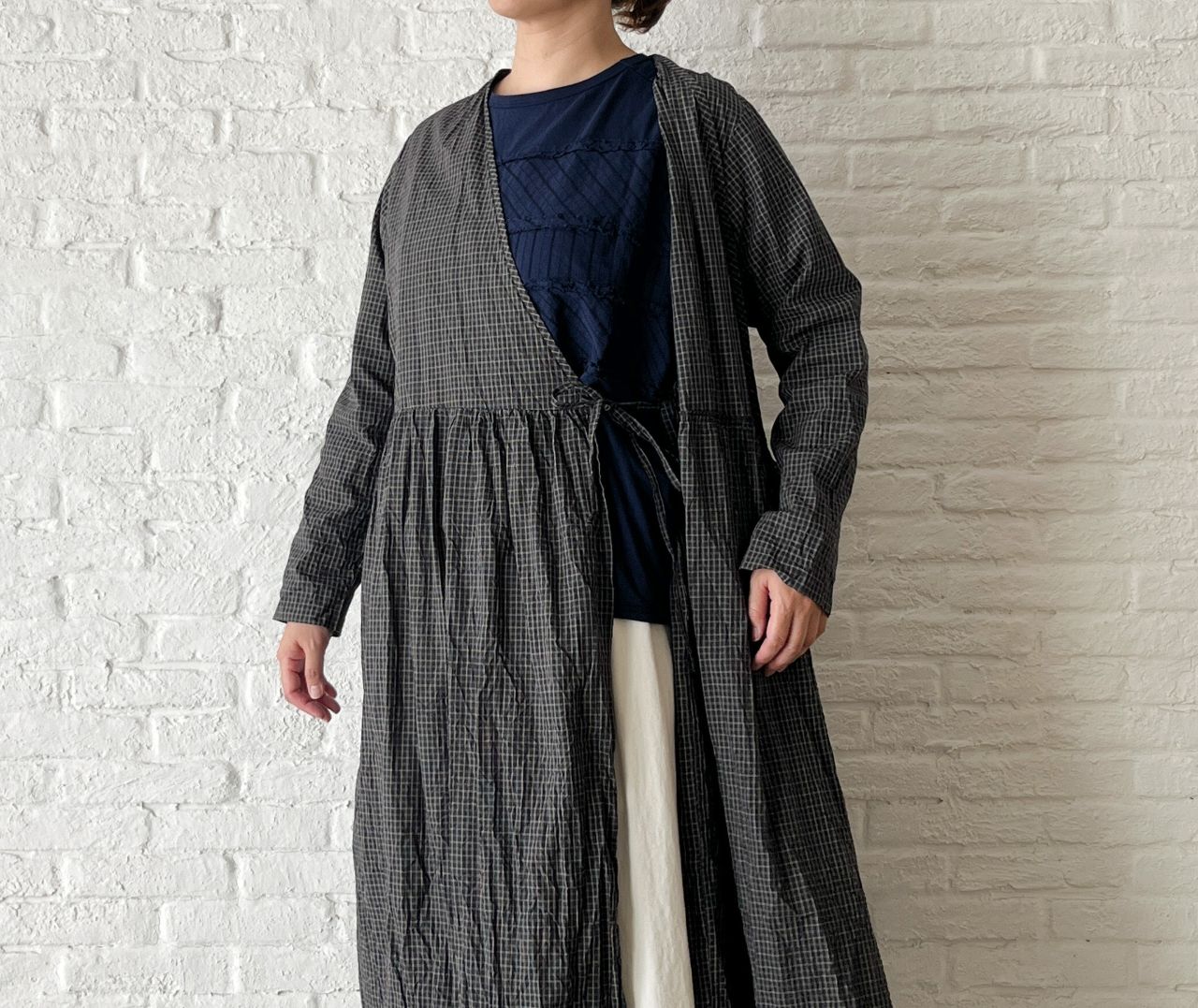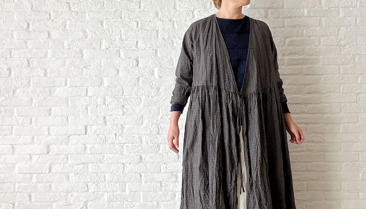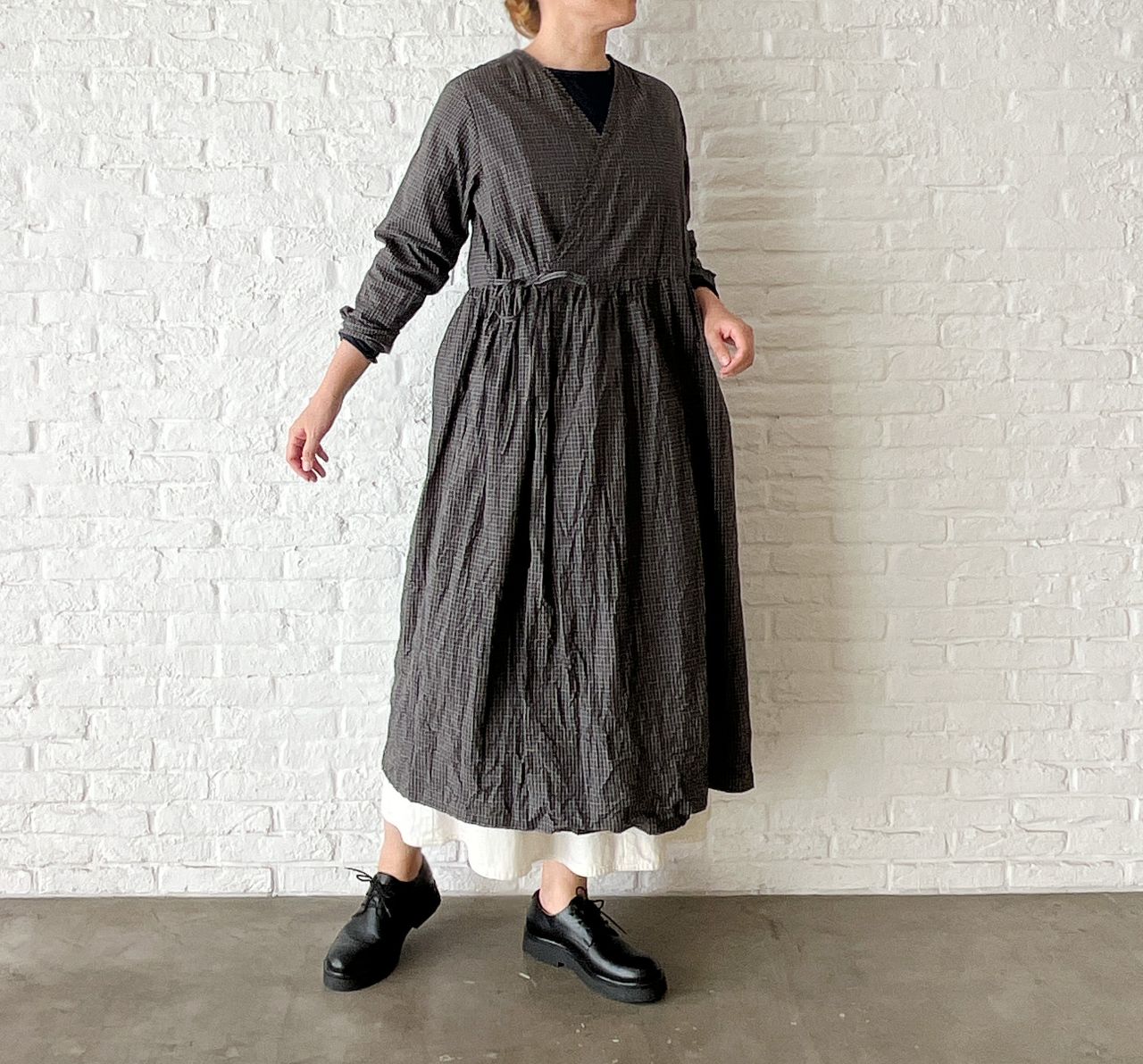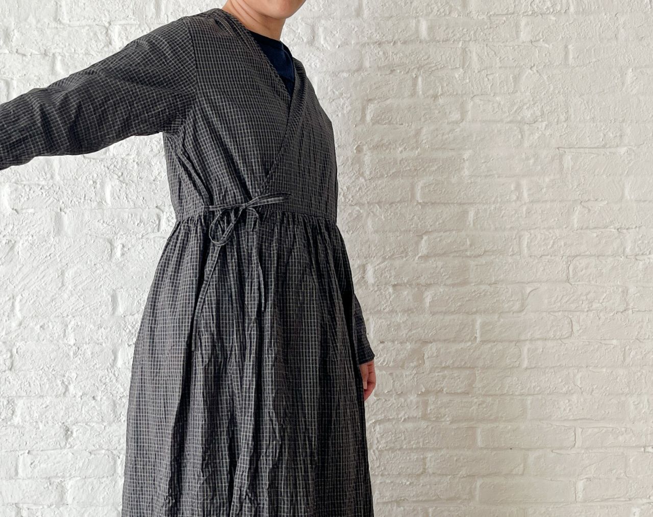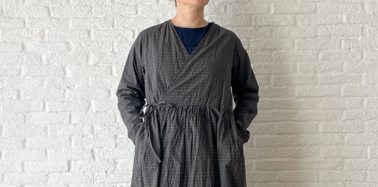 no.4503 オーガニックミニチェックワッシャー カシュクールドレス