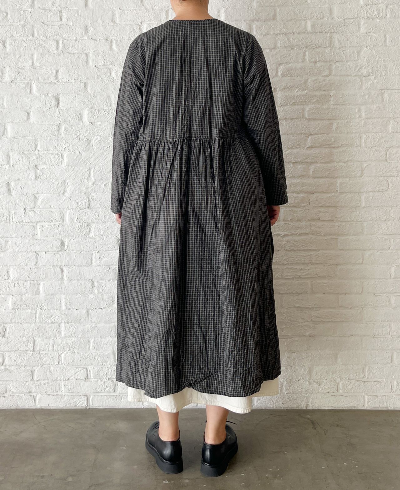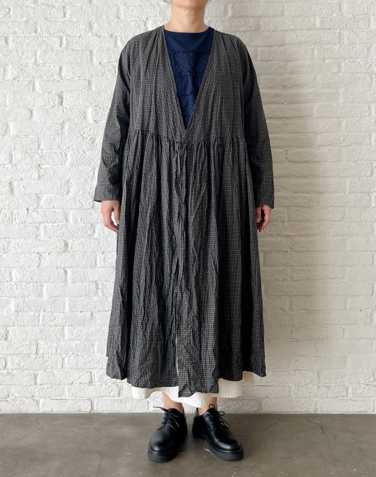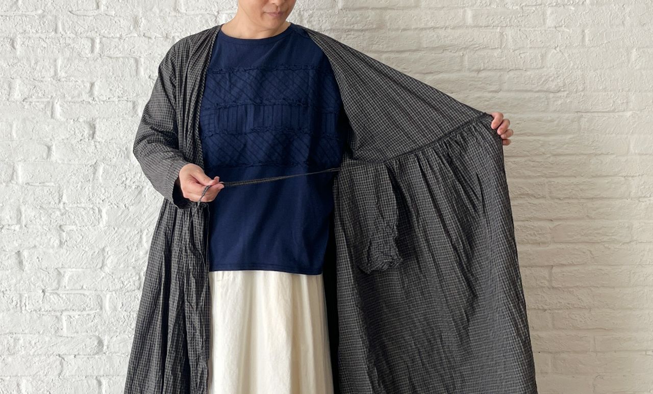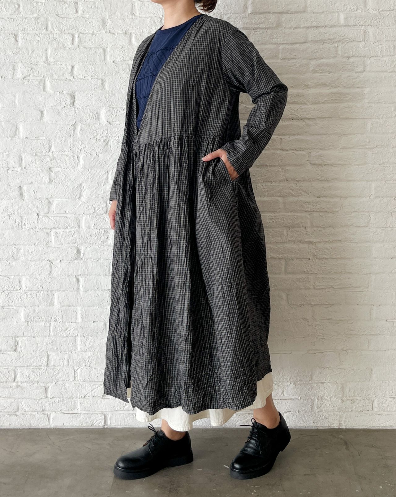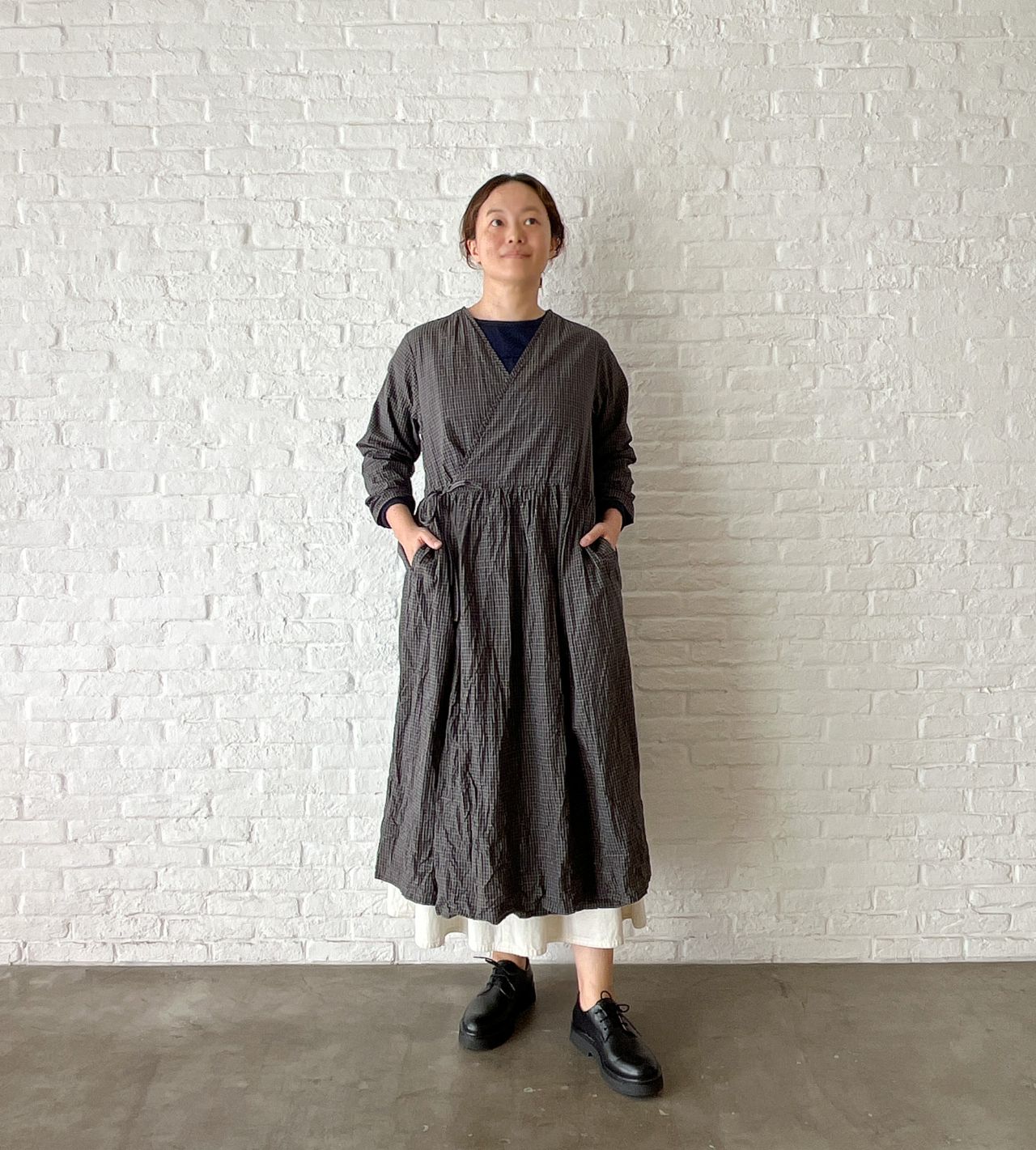 no.4503 オーガニックミニチェックワッシャー カシュクールドレス