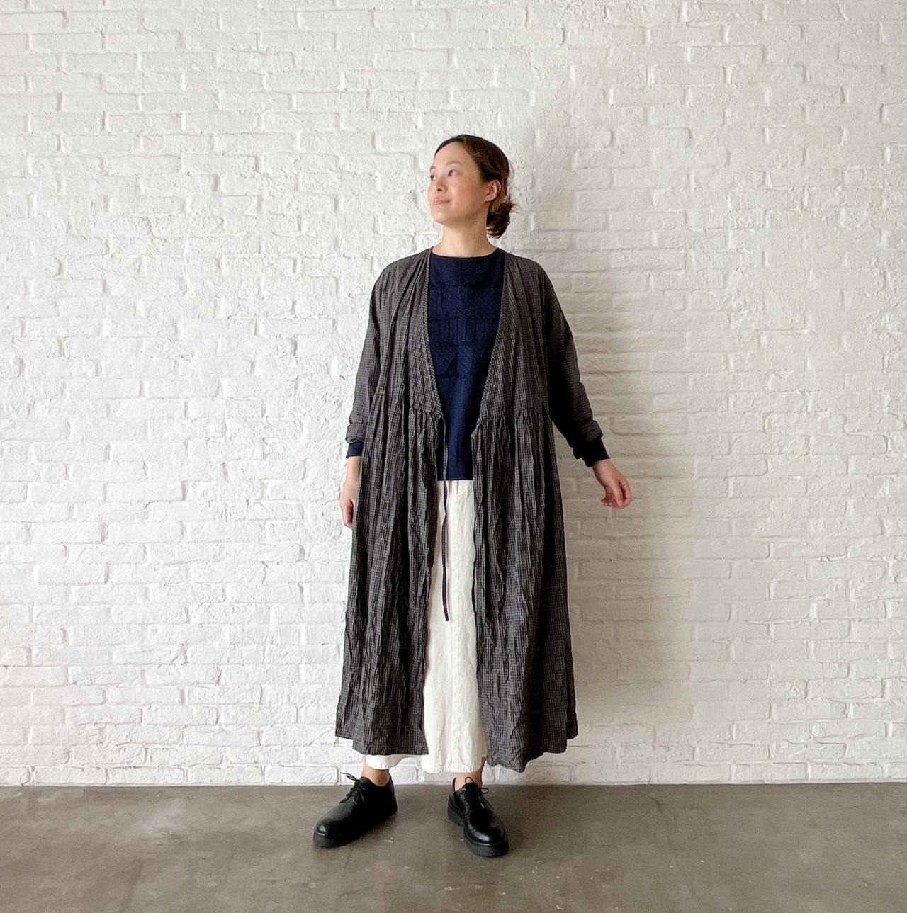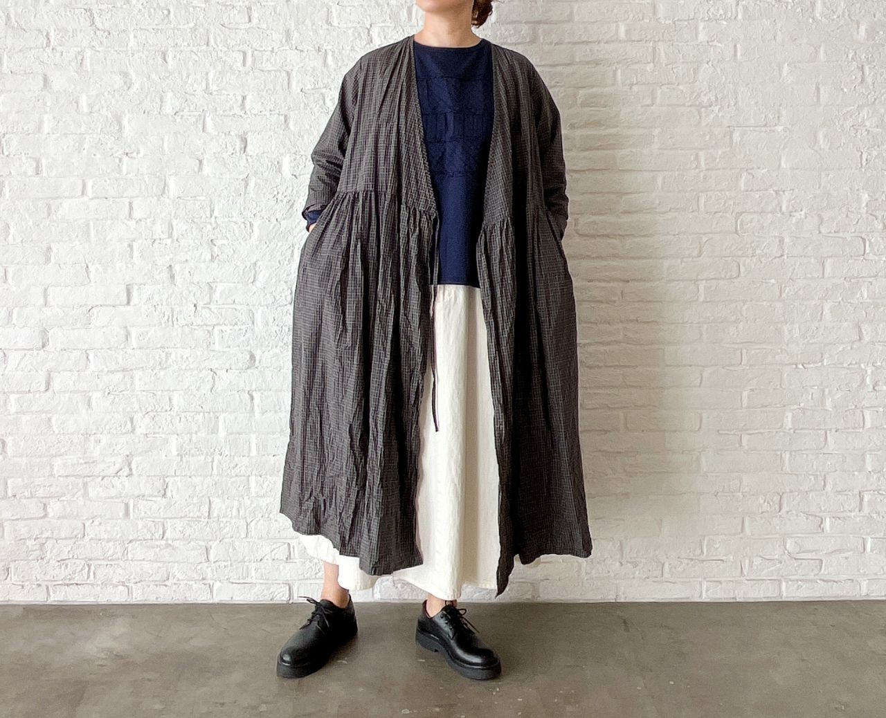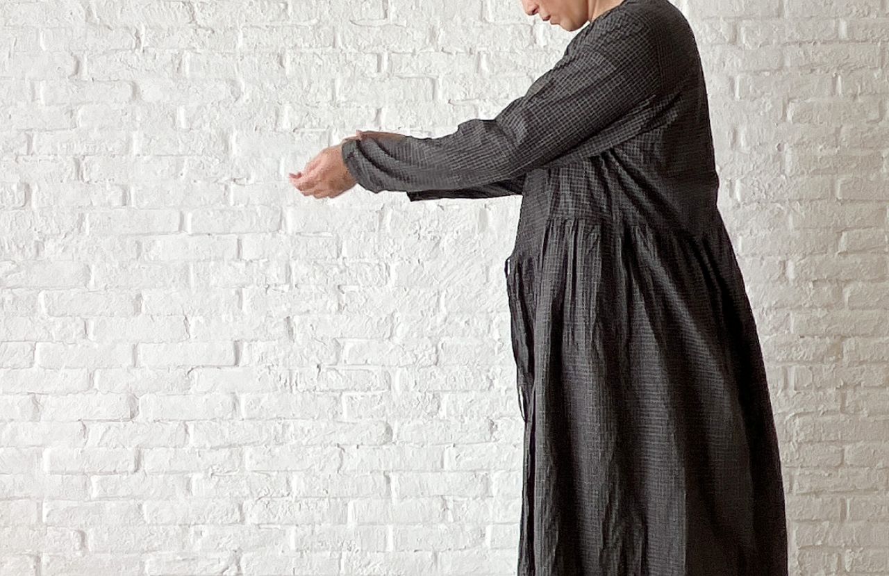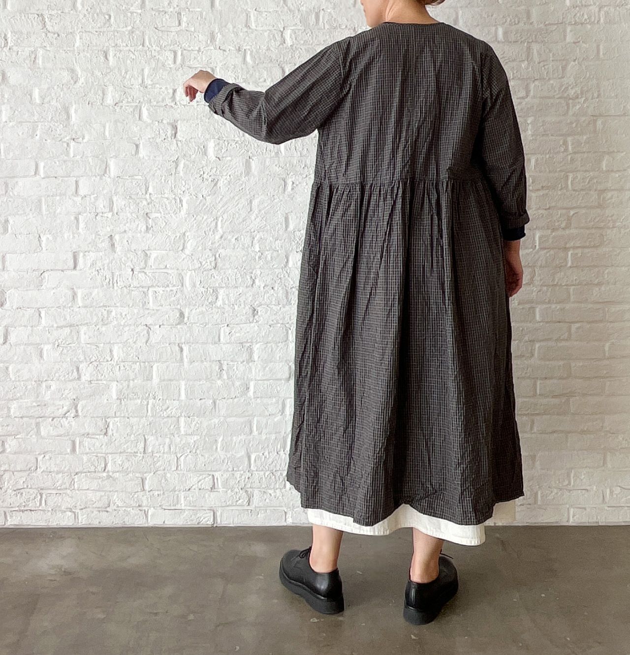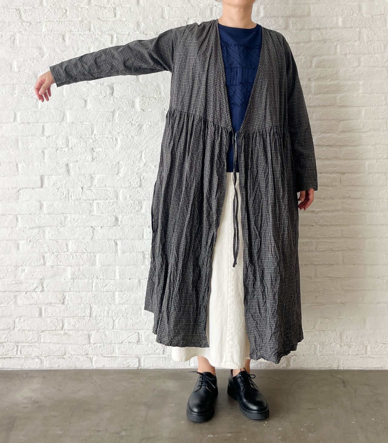 no.4503 オーガニックミニチェックワッシャー カシュクールドレス