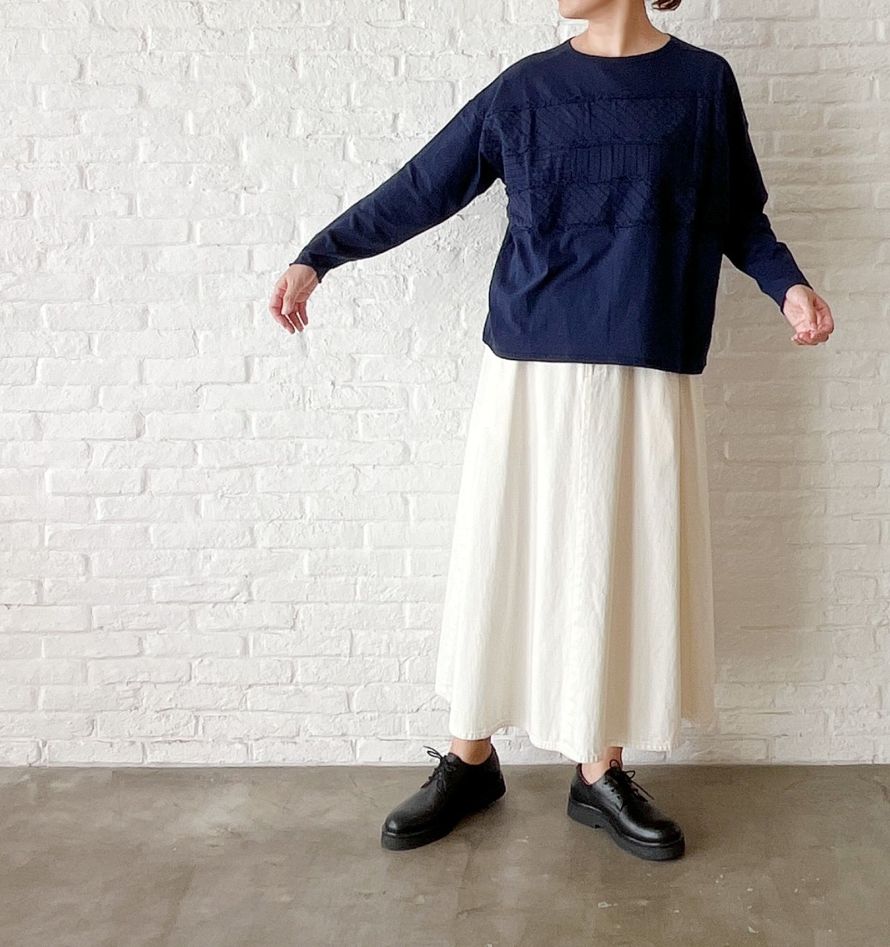 col.02 オフホワイト・36size(着用)/35 フェードブルー/24 インディゴ/size展開・34 ¥39,600