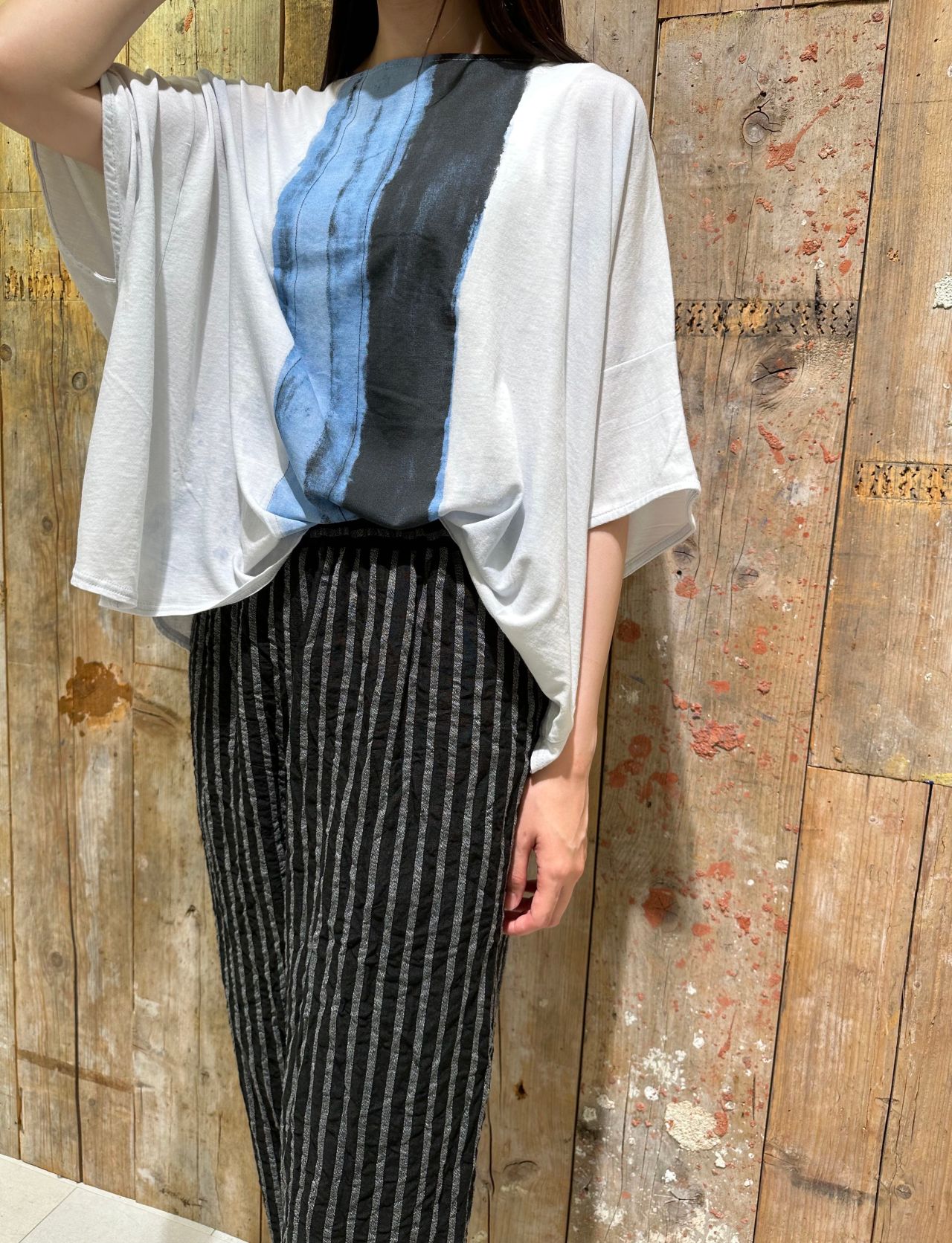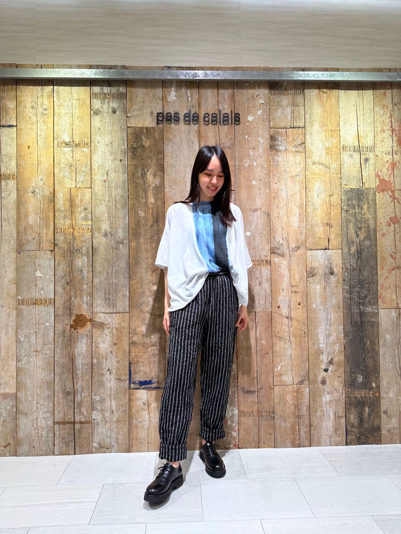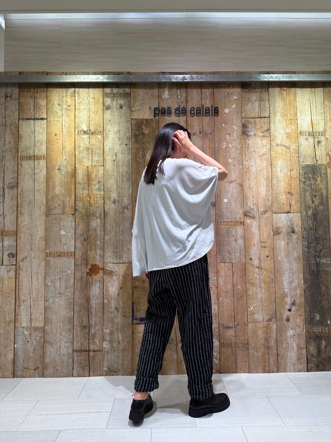 今回は初夏をイメージして清涼感あるストライプパンツと合わせました。