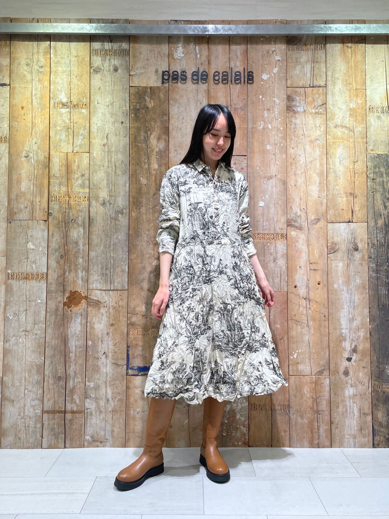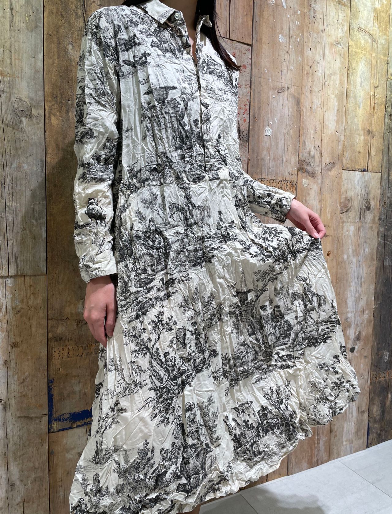 toil de jouy のプリントの存在感がインパクトなシャツワンピース。