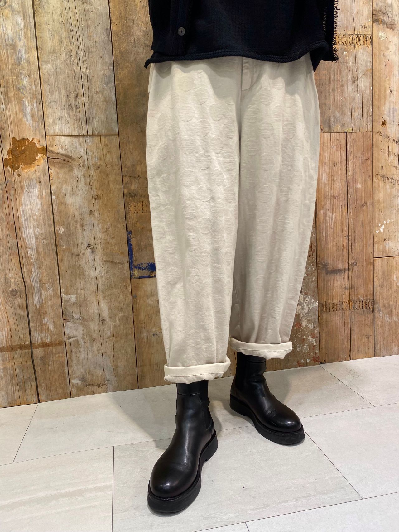 さりげないドット柄が魅力のルーズシルエットのパンツ。