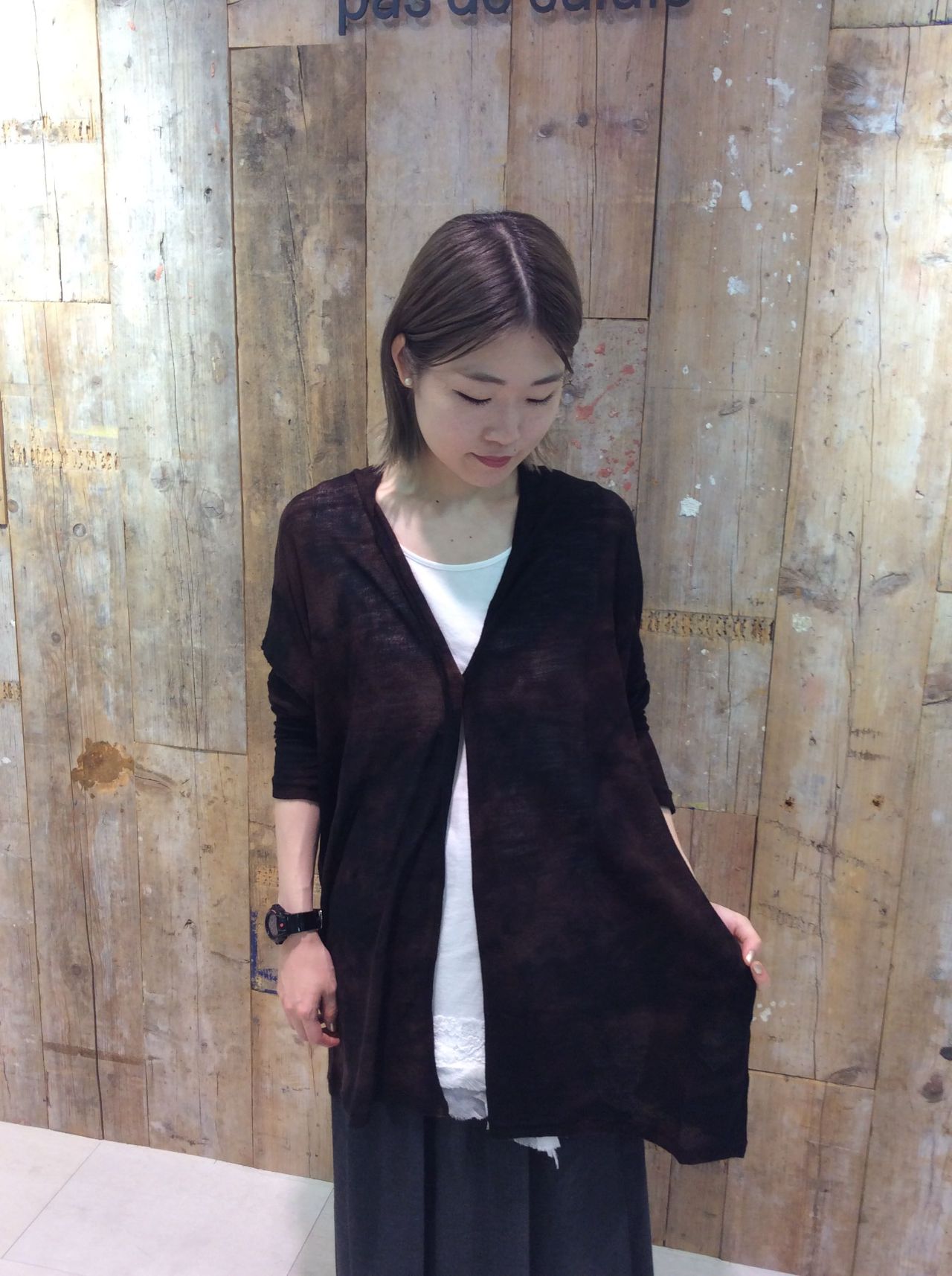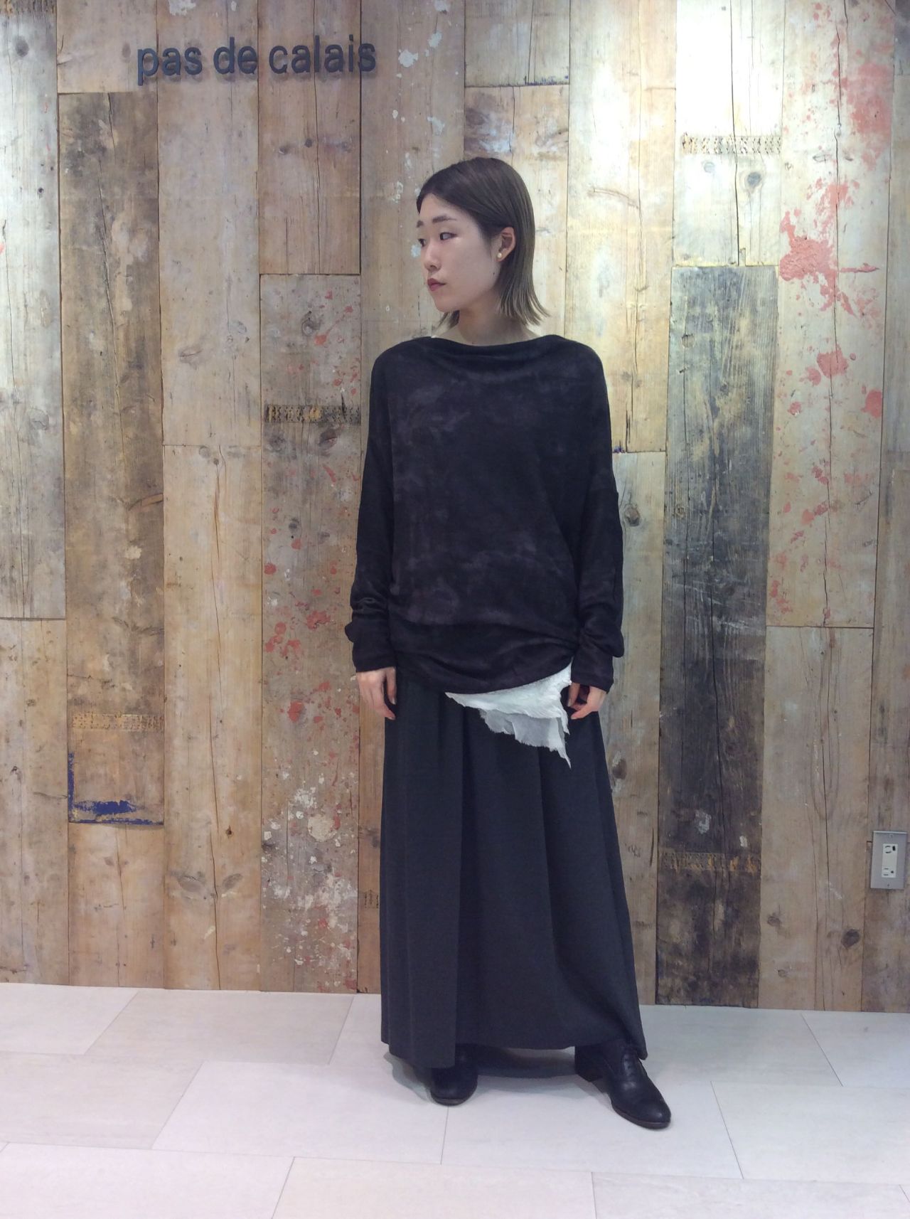 薄くて柔らかなぼかし風のプリント生地のプルオーバーは