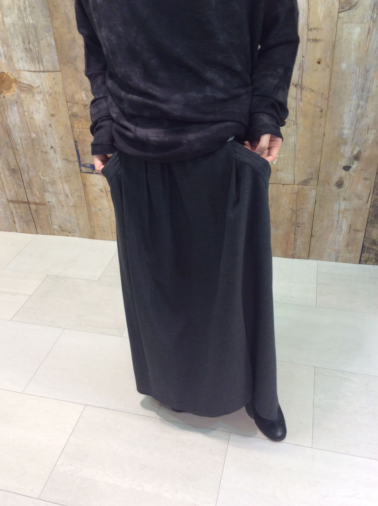 ウエストゴム仕様の楽な履き心地の、広がり過ぎない程よいボリューム感の