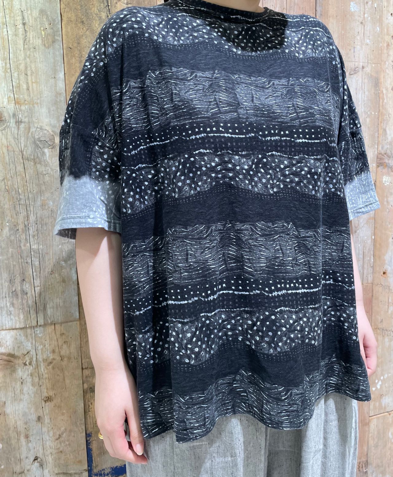 異なる柄をボーダーのように描いた、オリジナルプリントが魅力。