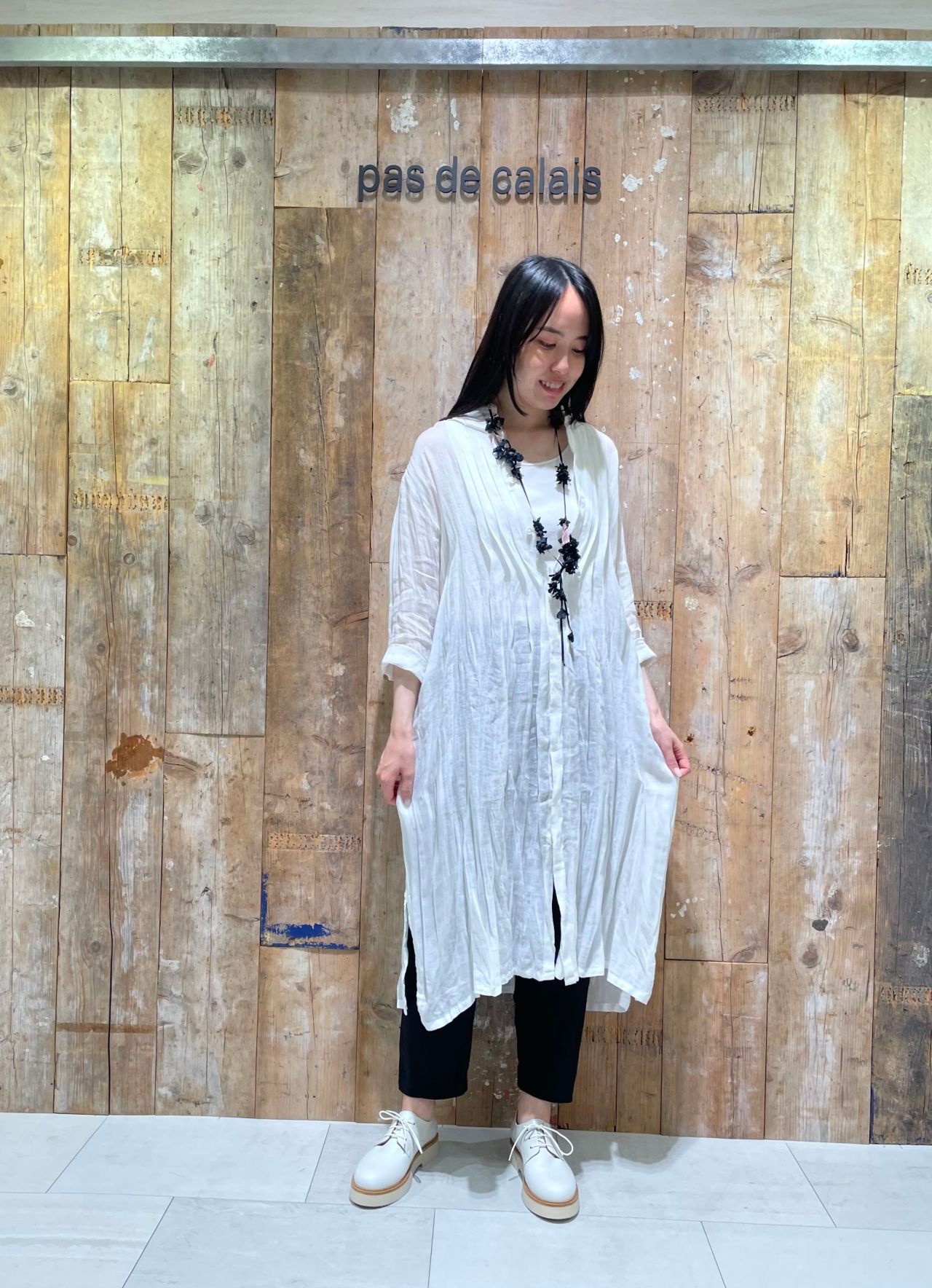 長すぎない丈感で、パンツやスカートと合わせて頂くのもオススメ。