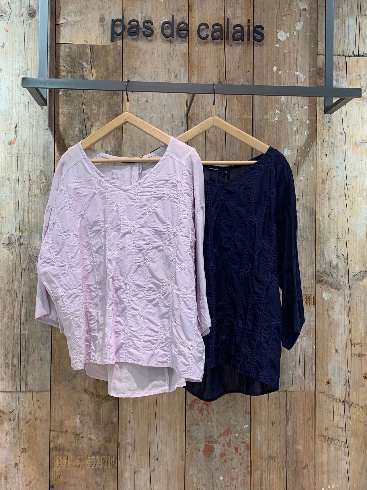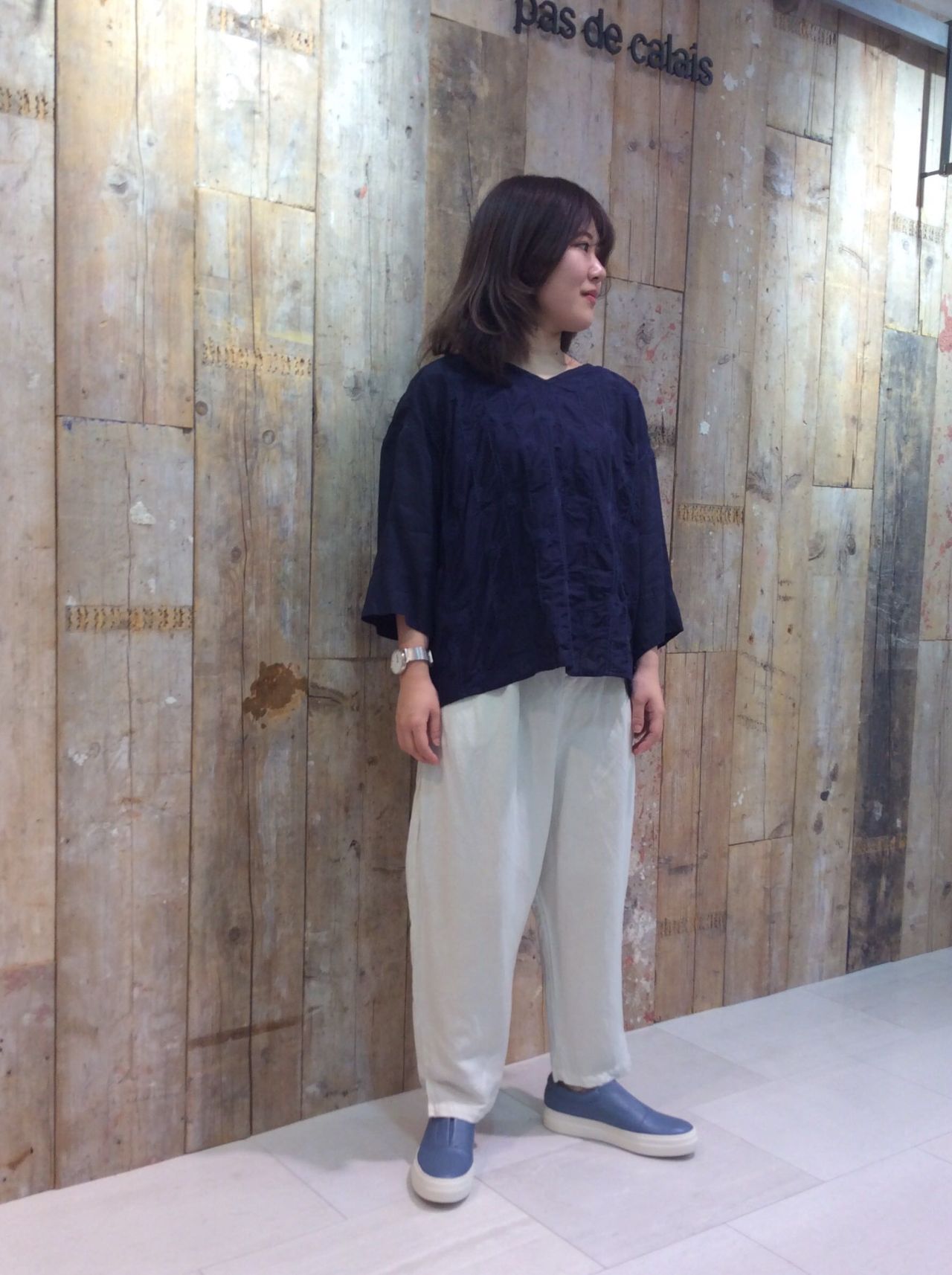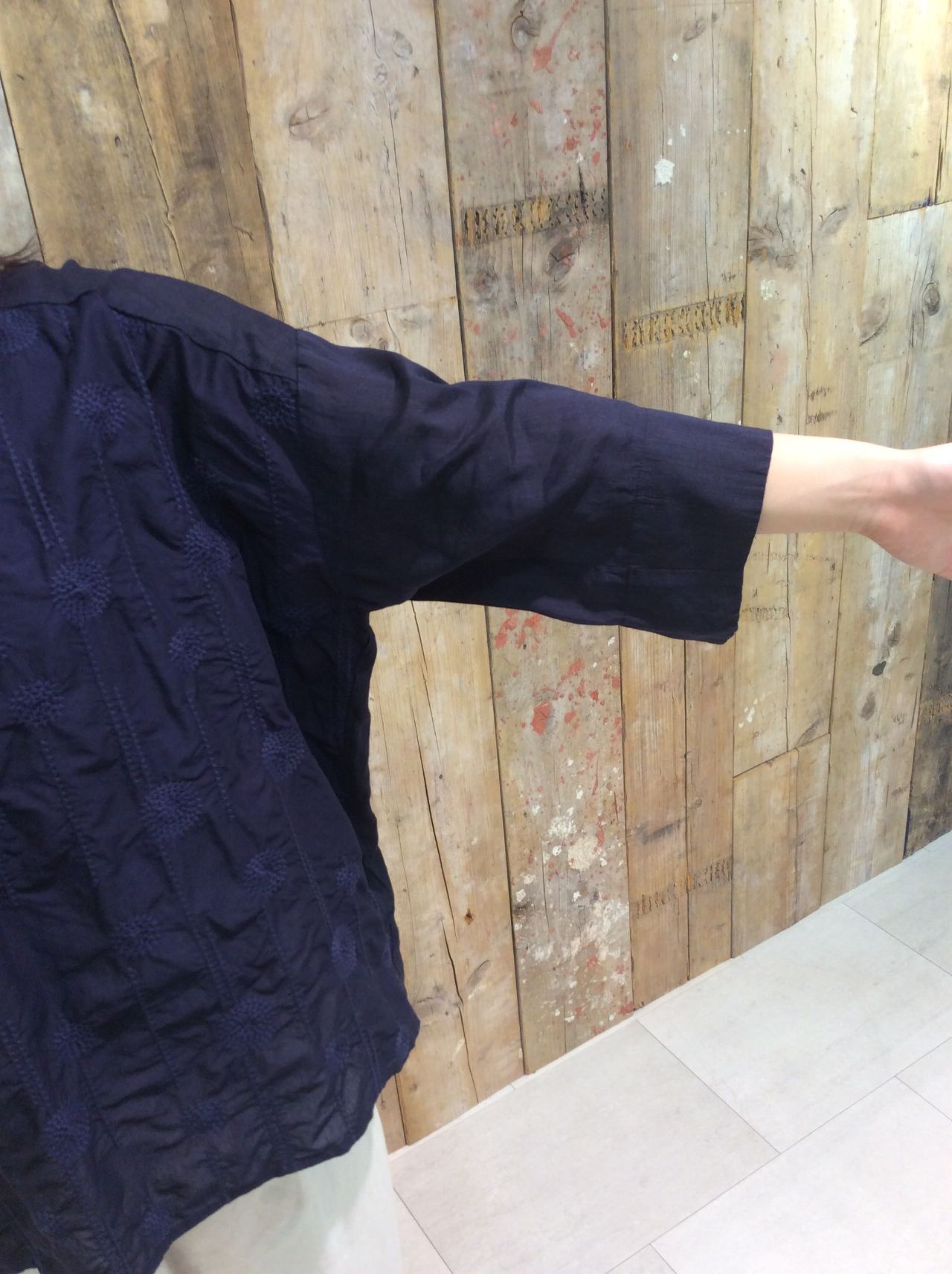 薄い生地感なのに透け感が気にならないので、一枚できることが可能でとても軽い着心地です。
