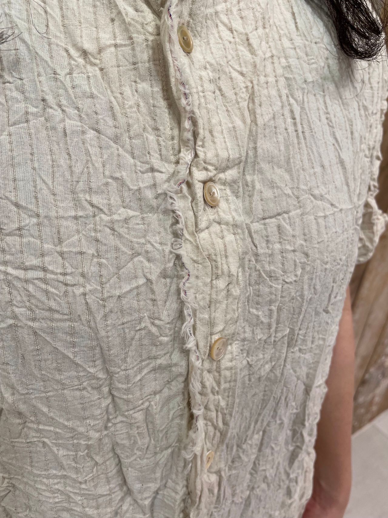 綿麻素材の糸をストライプ状に見える様に組み合わせて織られており、