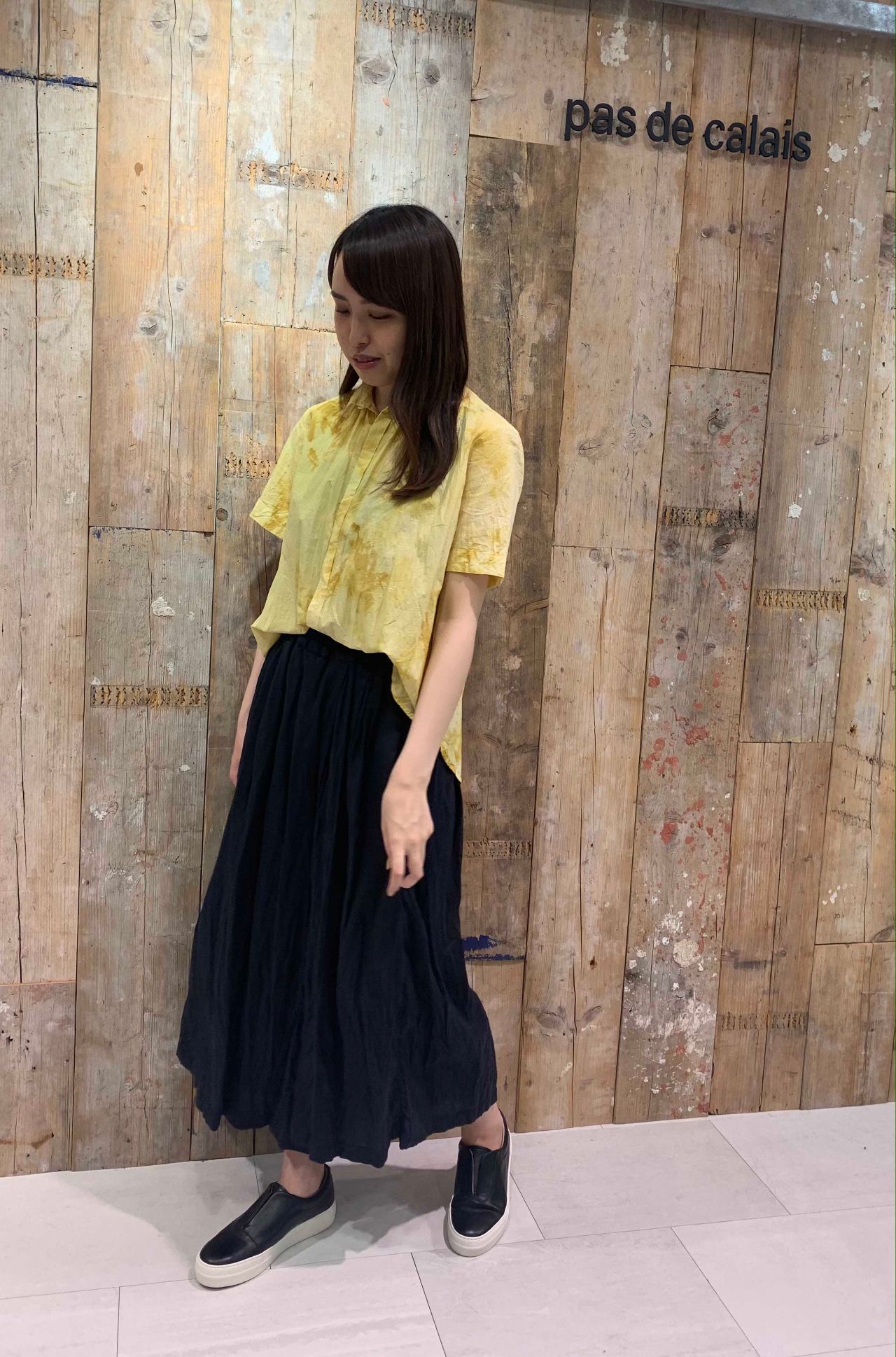 1番上には貝ボタンが付いており、生地にはタテシワが入ったパドカレらしいこだわりの詰まった一枚。