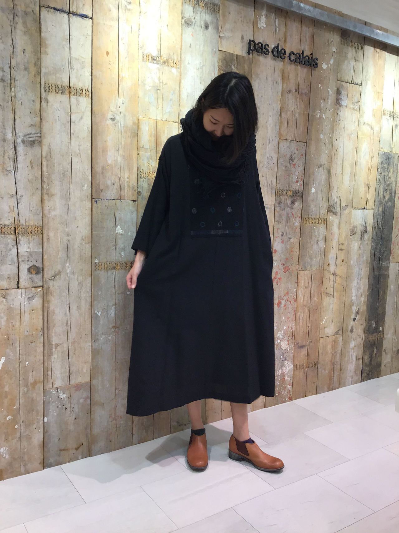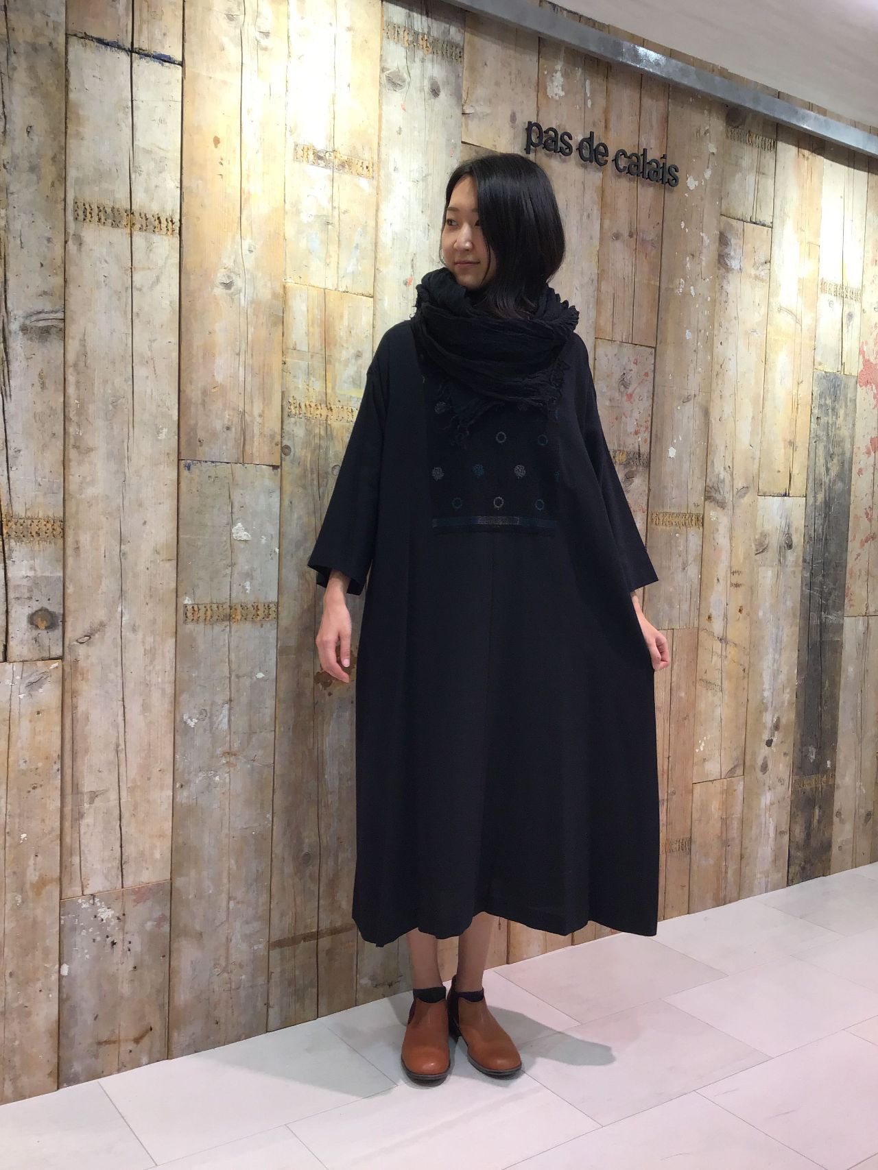 暖かみのあるゆったりとした形で、大人なカジュアルワンピースになっています。